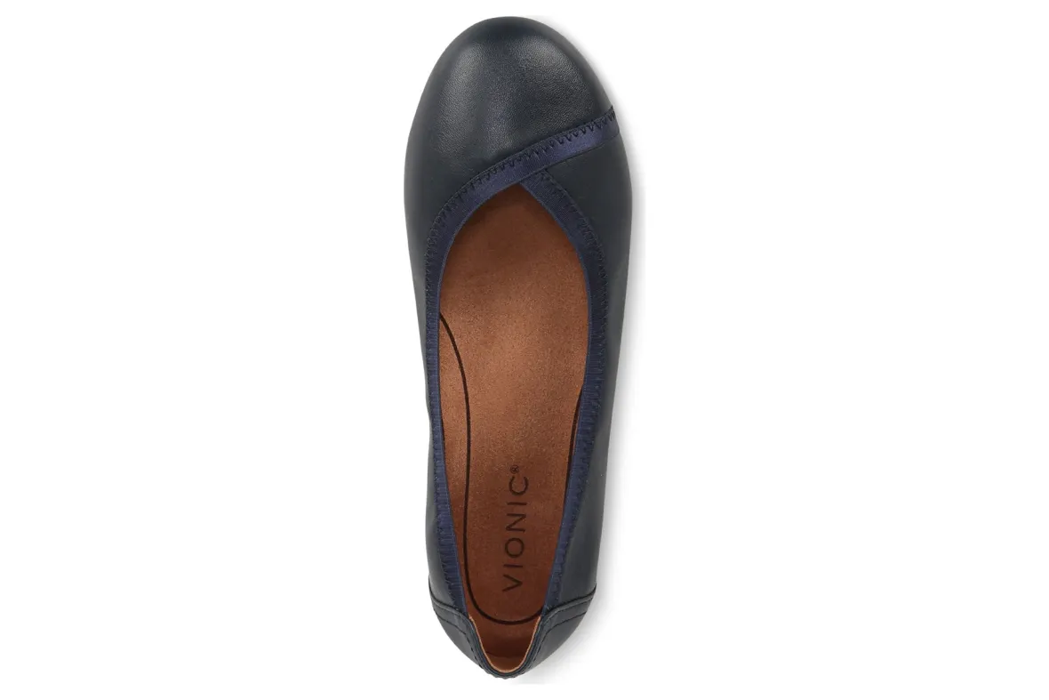 Ribbon detail, elastic topline comfort and serious support define this classic; modernized for all-day wear and walkability.