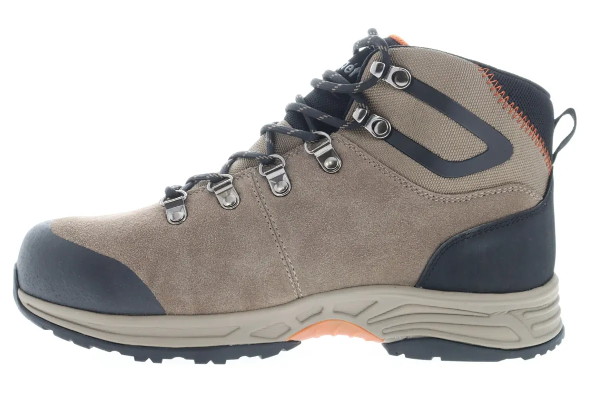 Propet Conrad is a hiking boot built for the outdoors. Take on anything with a suede and mesh upper, waterproof construction, EVA midsole and rubber outsole. A breathable PU insole keeps feet cool, while orthotic insoles provide support for any trail or hike.
