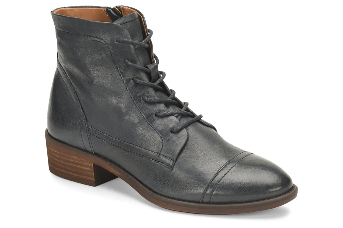A menswear-inspired cap-toe bootie, crafted in buttery soft-to-the-touch leather that?s been richly burnished to bring out its unique character. Offered in premium Italian full-grain leatherLace-up styling with side zipperr