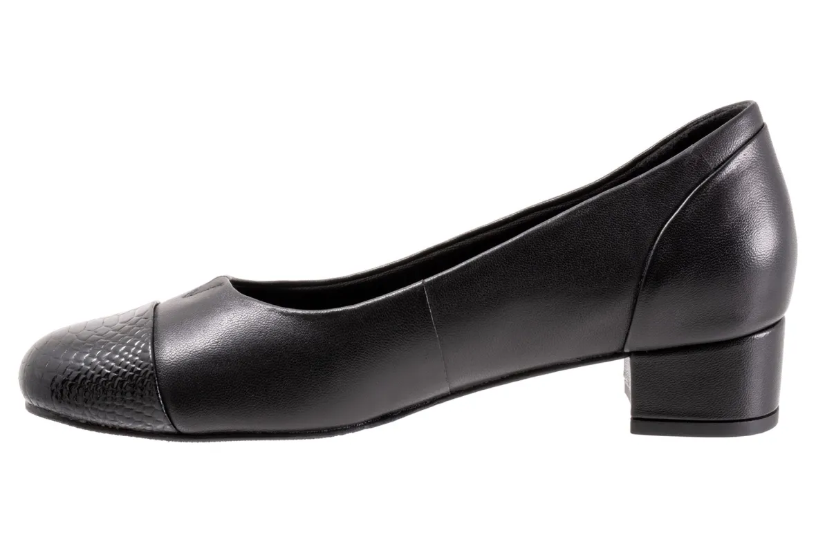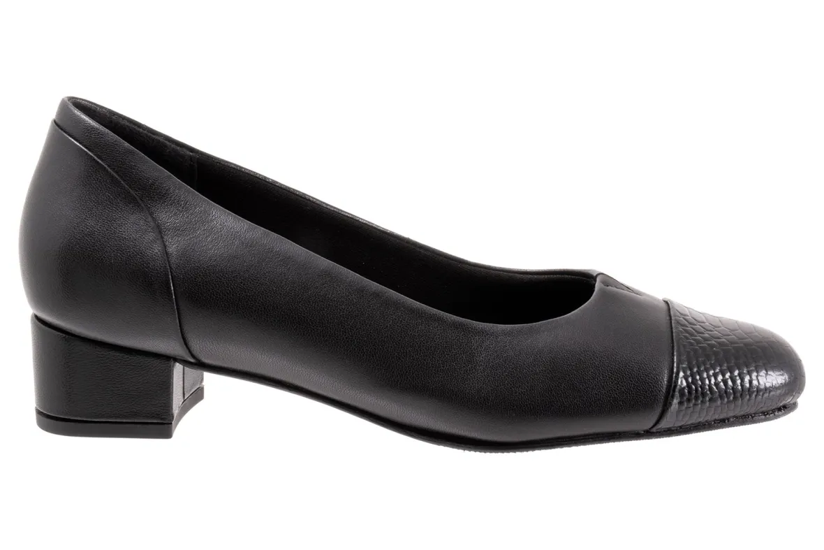 Block heel of 1 1/4″ with a gentle soft square toe. The classic pump gets an updated look with the Daisy. A gentle square cap toe and moderate heel support your style and comfort.