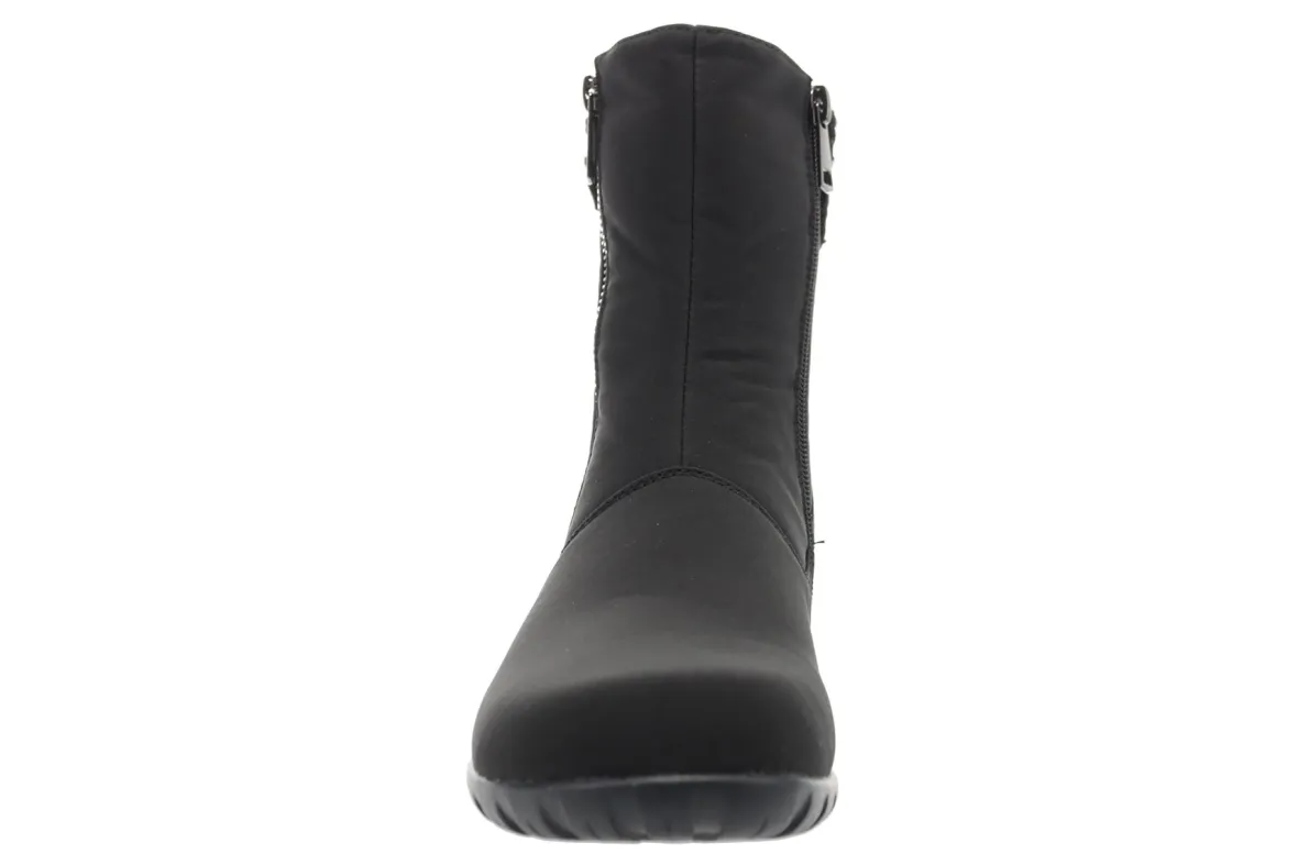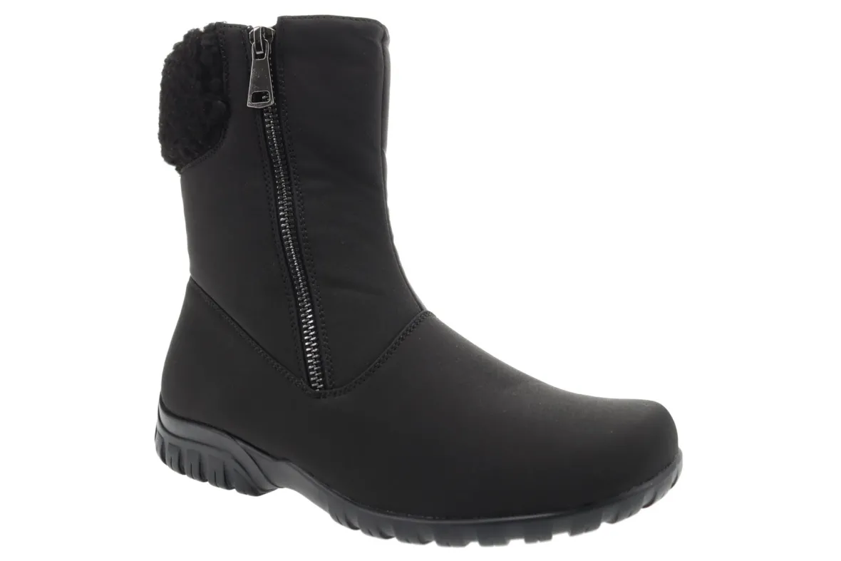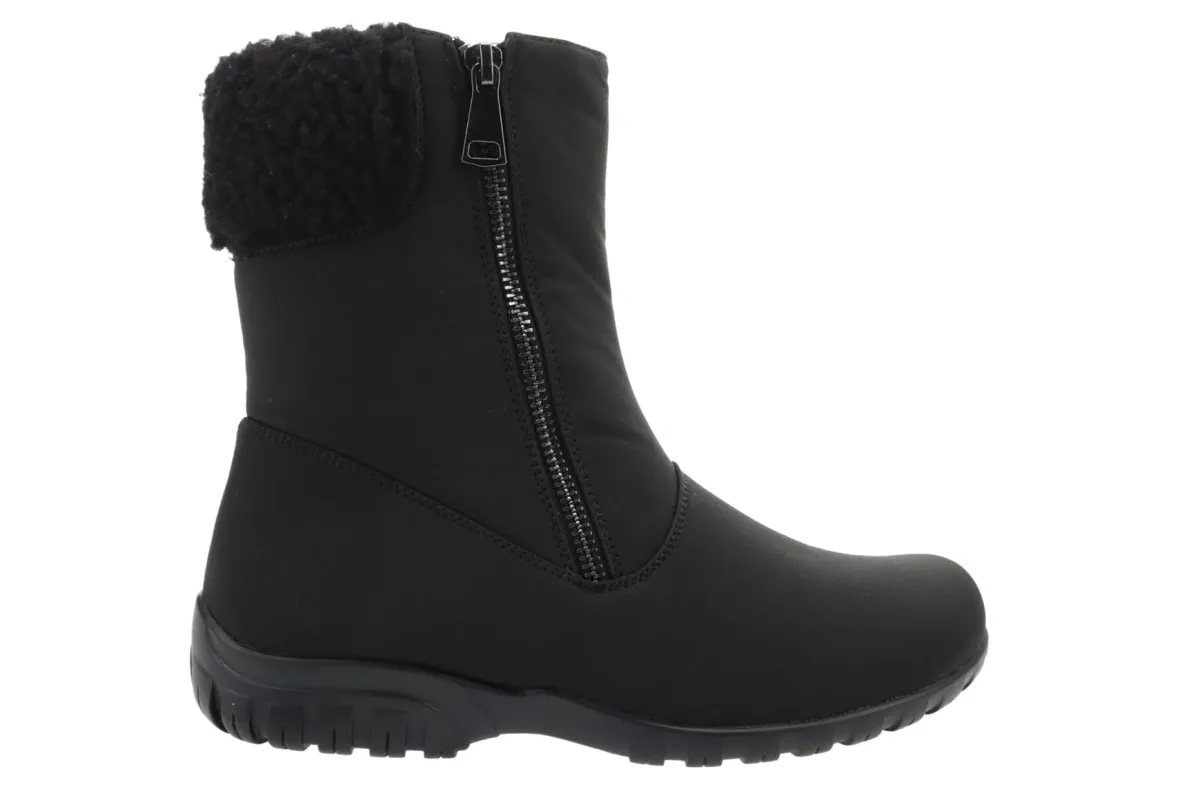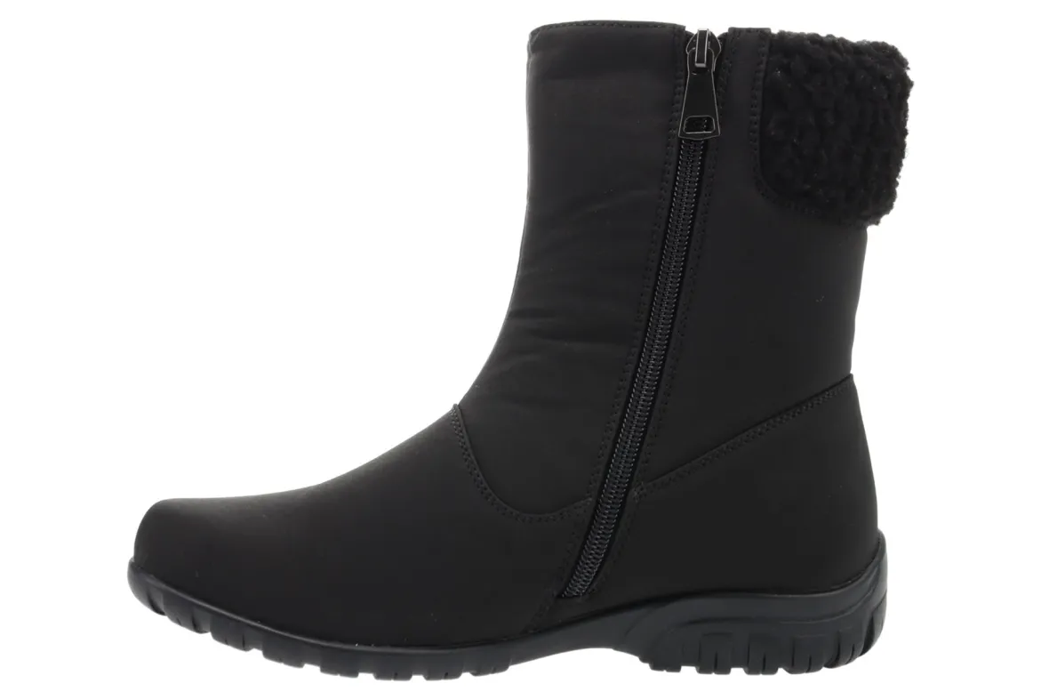 Propet Dani Mid is a warm and comfortable winter boot. Features include a waterproof nylon upper, double insoles, EVA spacer and flexible rubber outsole. A side zipper, soft sherpa lining, 7-inch shaft height and padded footbed will make these boots a cold weather staple.