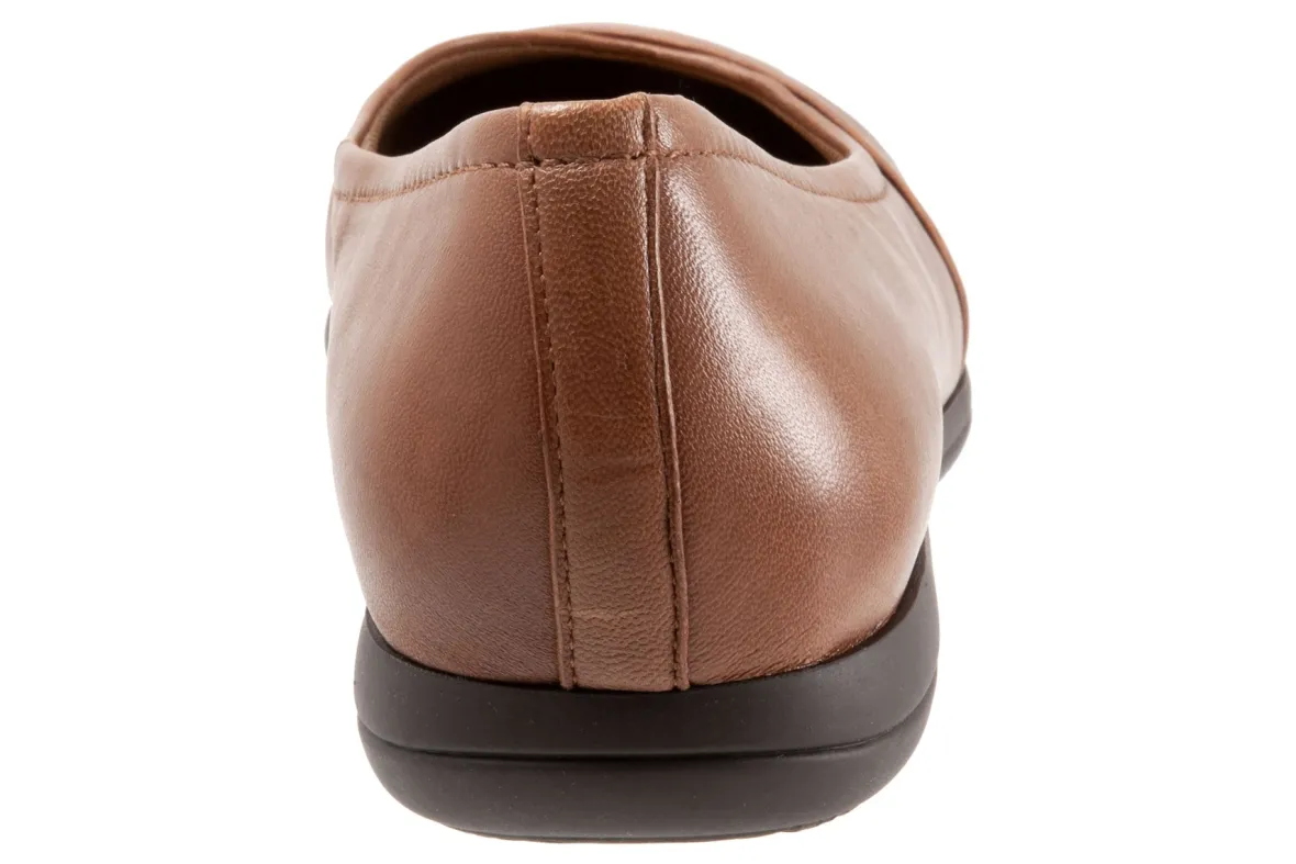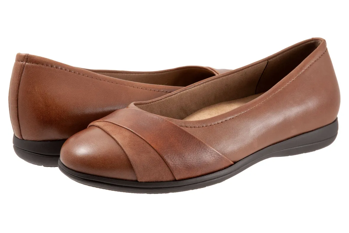 Danni is an essential flat with mixed materials and asymmetric detailing. A grippy rubber sole and removable cushioned footbed with arch support make for all day comfort.