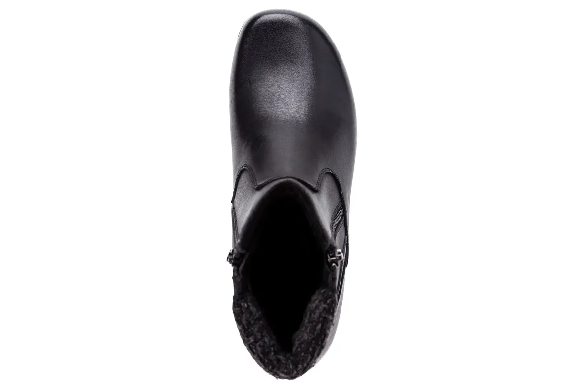 Propet Darleyis a stylish and comfortable women’s bootie. These chic cold weather boots have leather uppers, twin zippers and a flexible rubber outsole. A Scotchgard treatment is water repellent and resists stains, while a removable cushioned footbed provides added comfort.Leather Upper.Twin Zippers.Removable Footbed.Flexible Rubber Outsole.