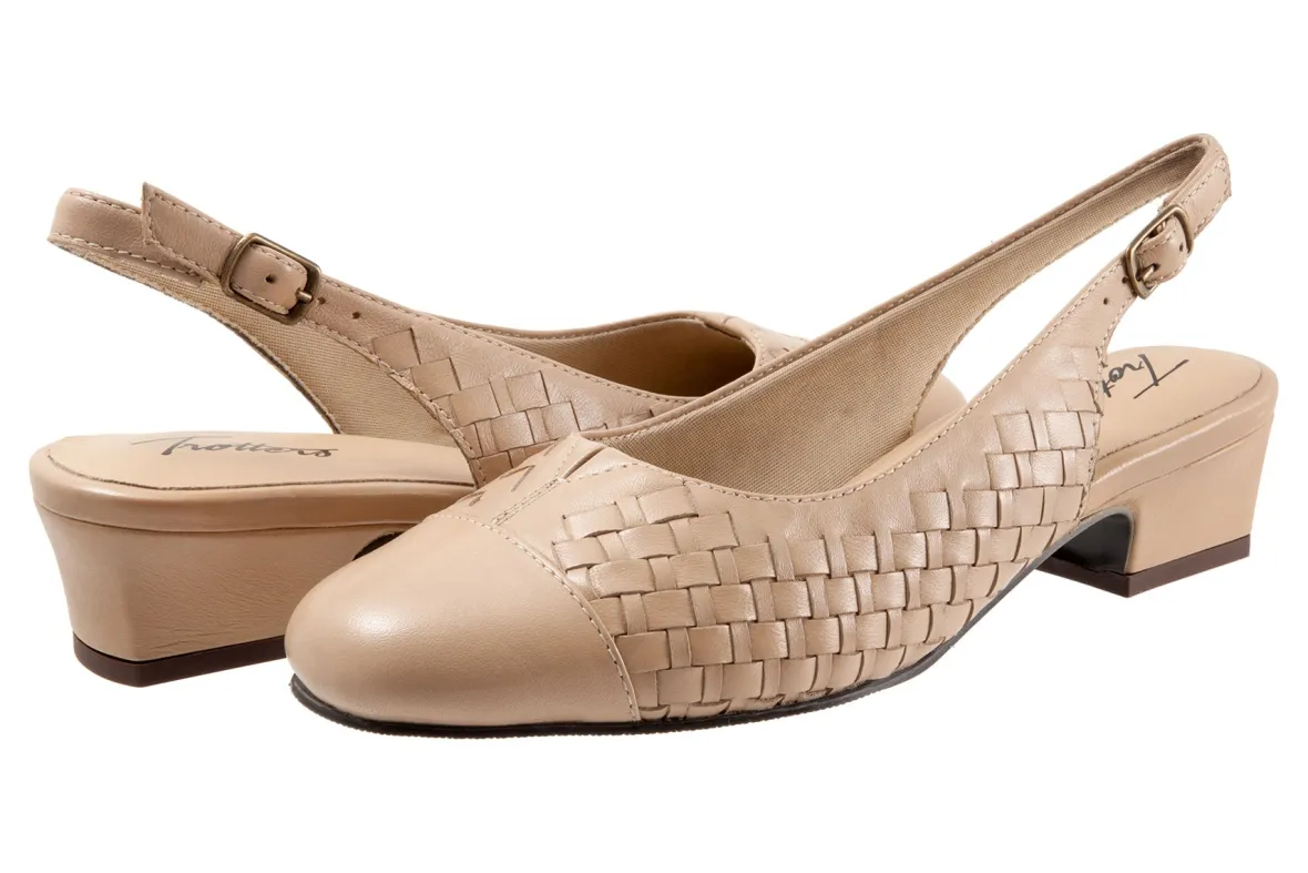 Trotters’ best-selling Dea gets the woven treatment which gives this slender sling-back pump a whole new character. Trotters Dea Woven features soft lining and a cushioned footbed.
