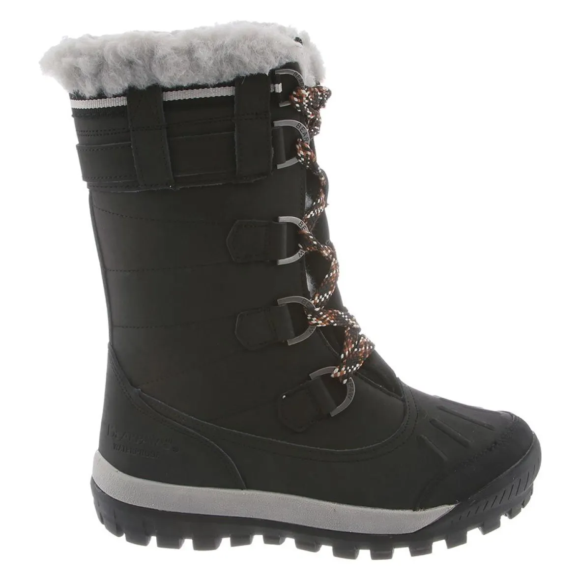 Bearpaw Desdemona is a waterproof boot built for comfort. These warm and cozy boots have action leather and cow suede uppers and a molded rubber outsole. A lightweight EVA midsole, wool blend lining, removable comfort sheepskin footbed and 10-inch shaft height sets these Bearpaw boots apart.