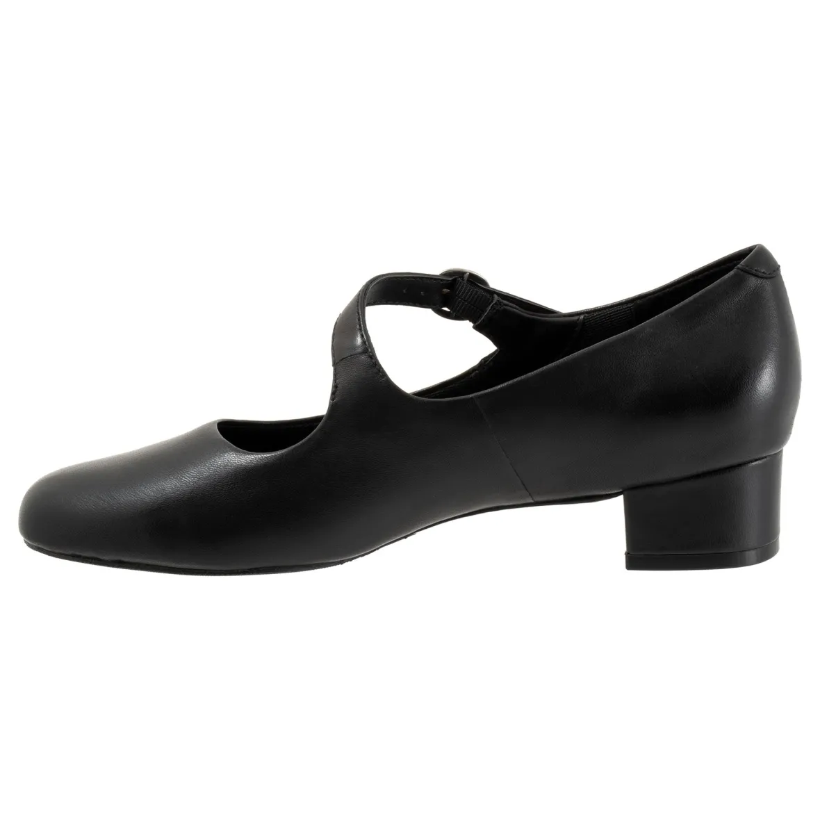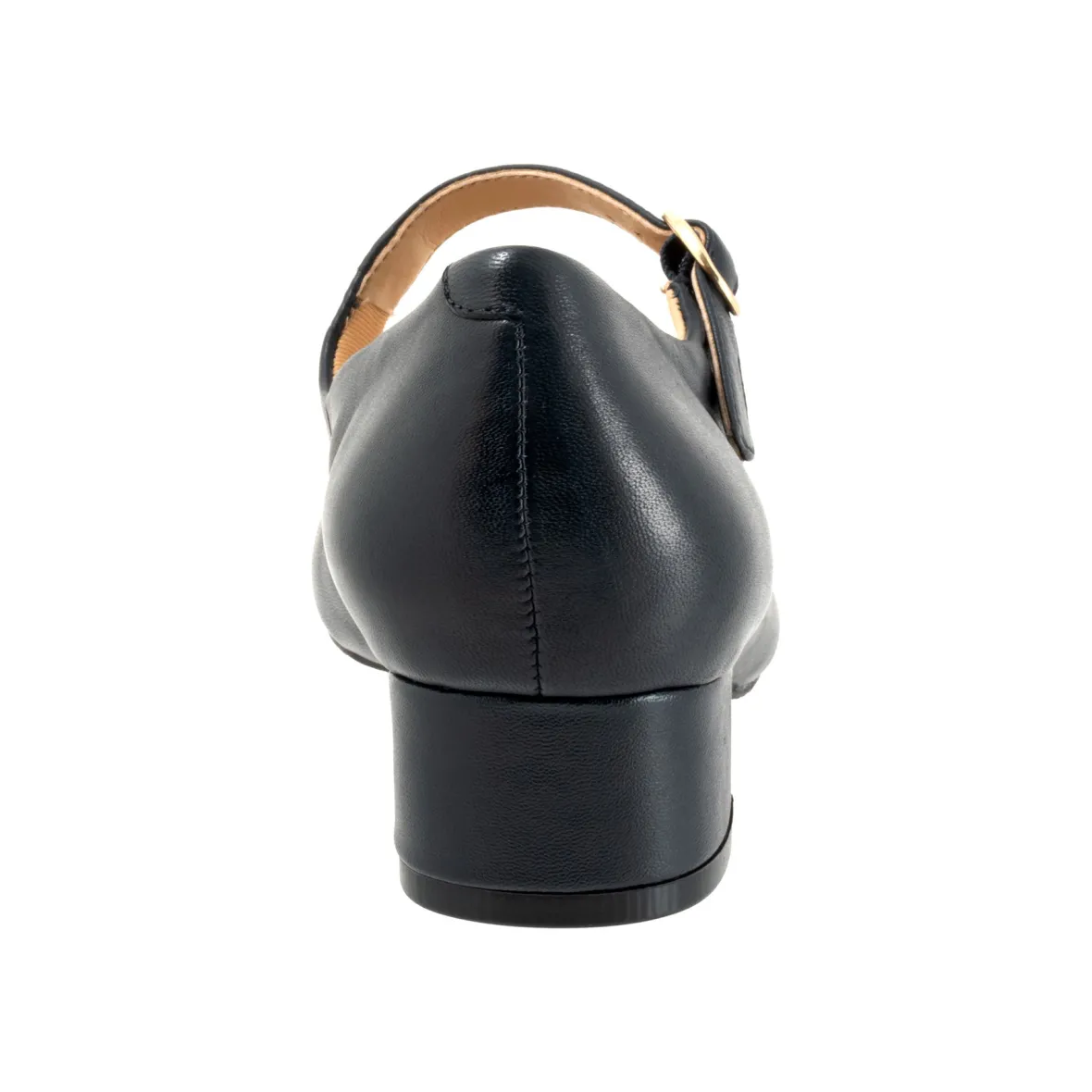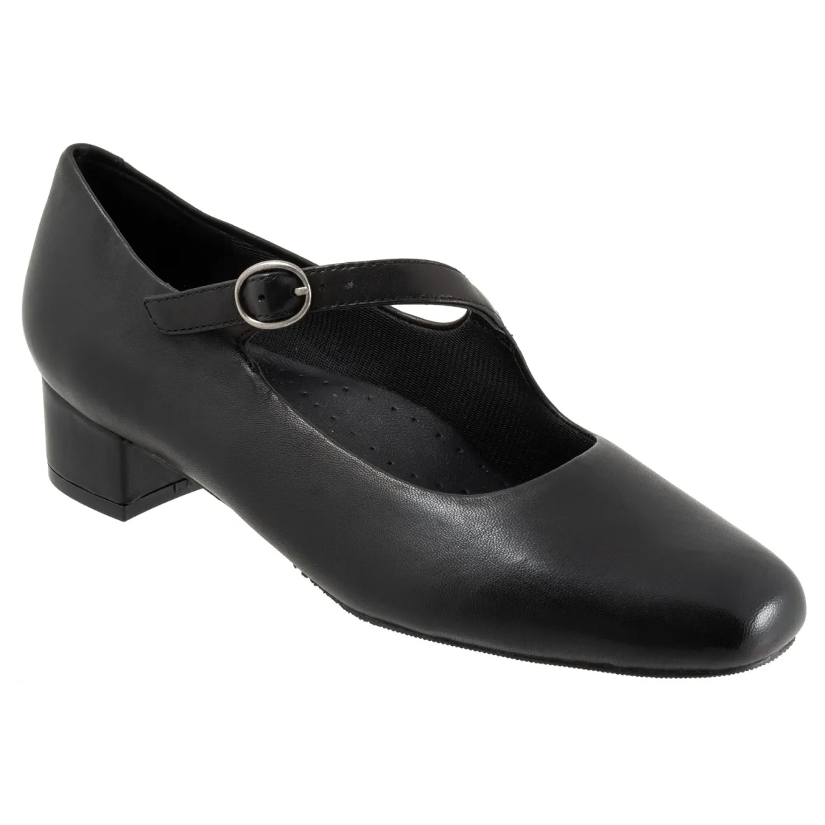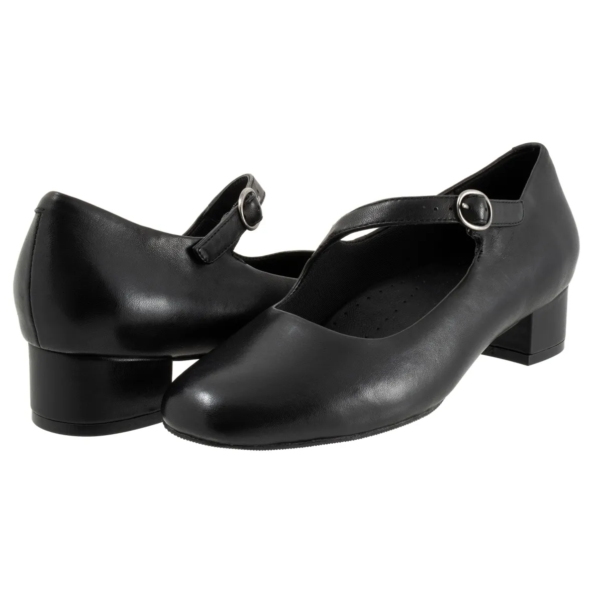 Demi is a blocked heel pump with cris-cross thin bands for a great fit. The cushioned footbed with arch support gives you a comfortable fit for an everyday wear.