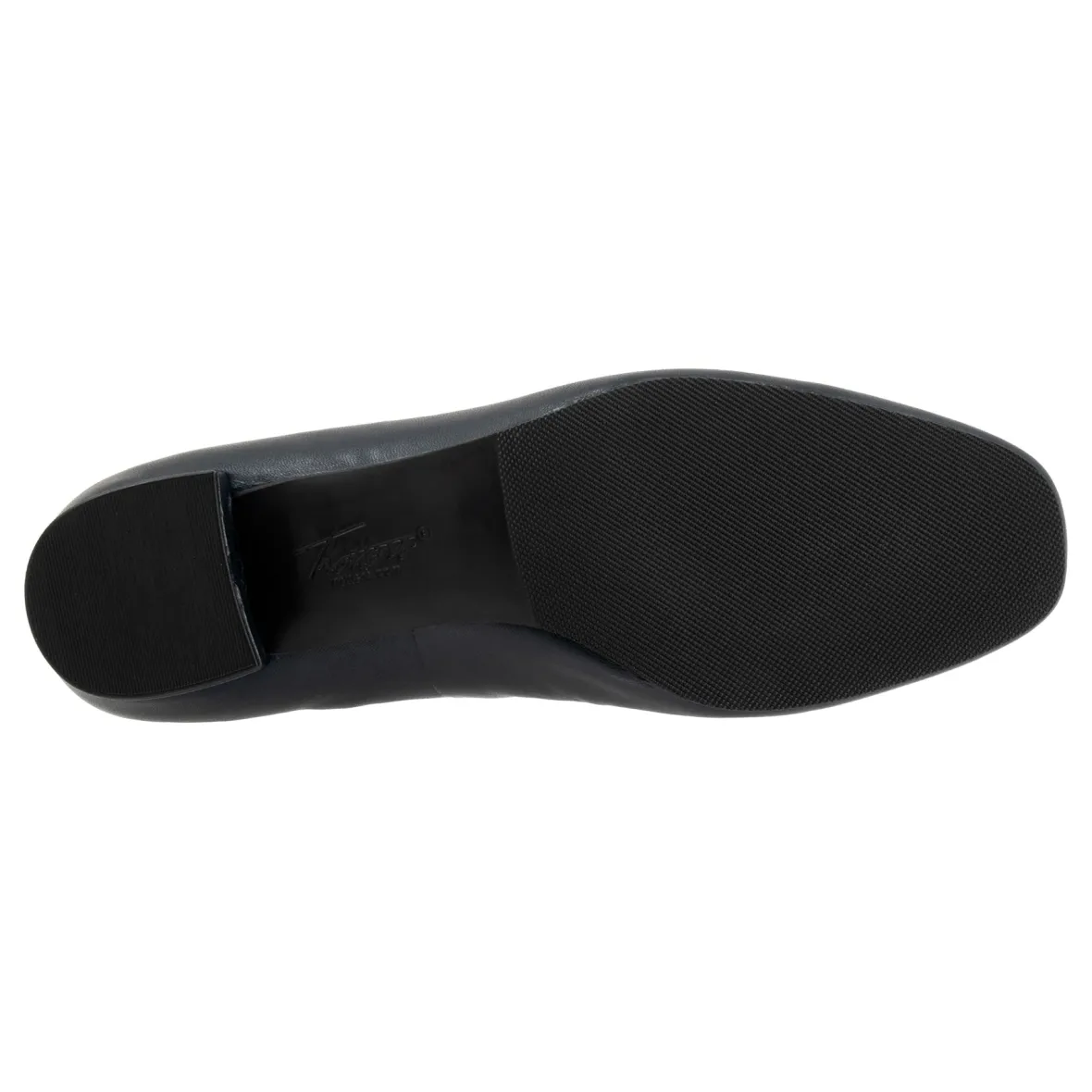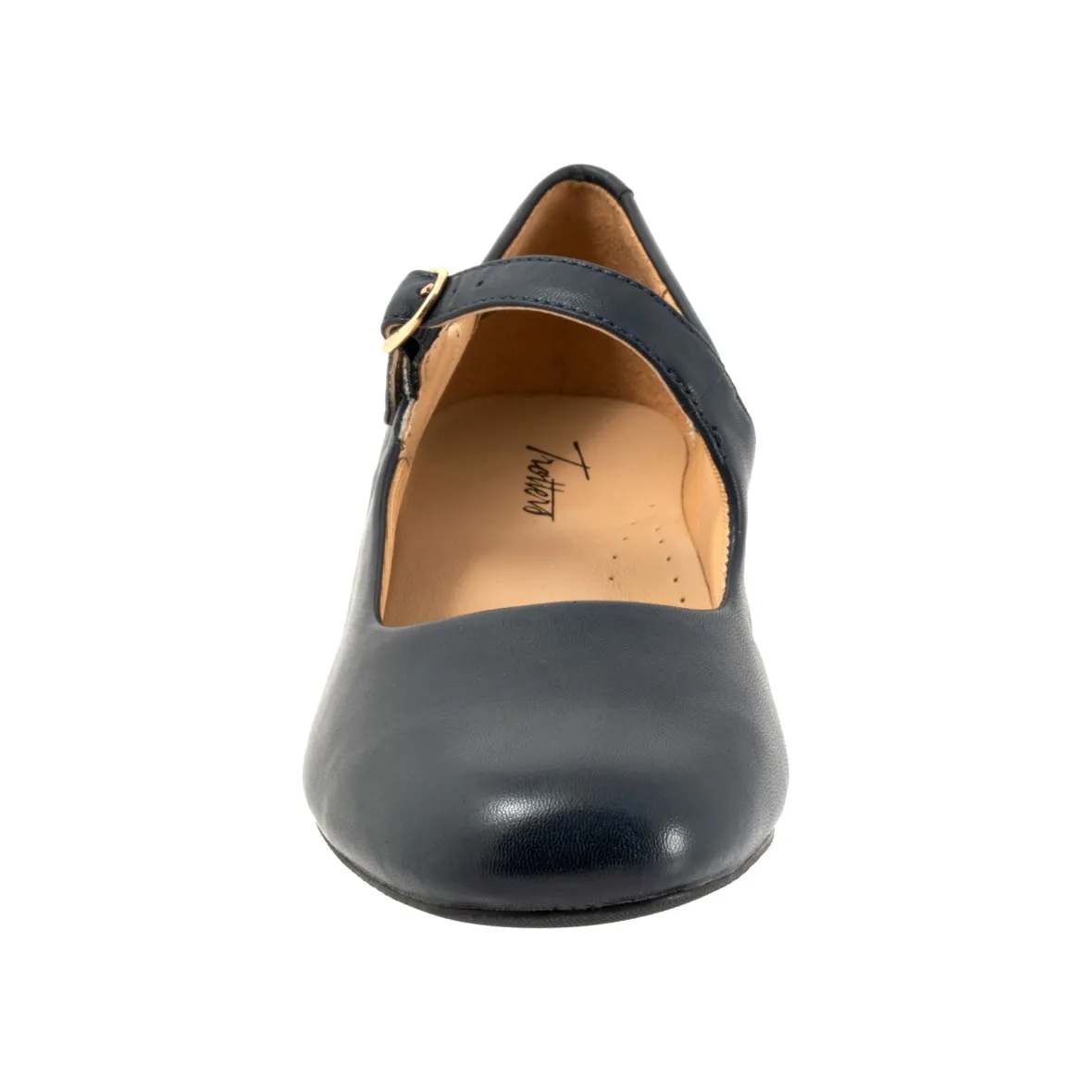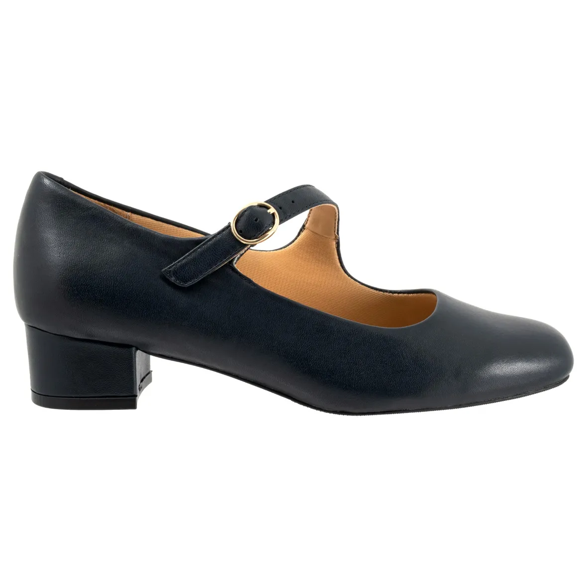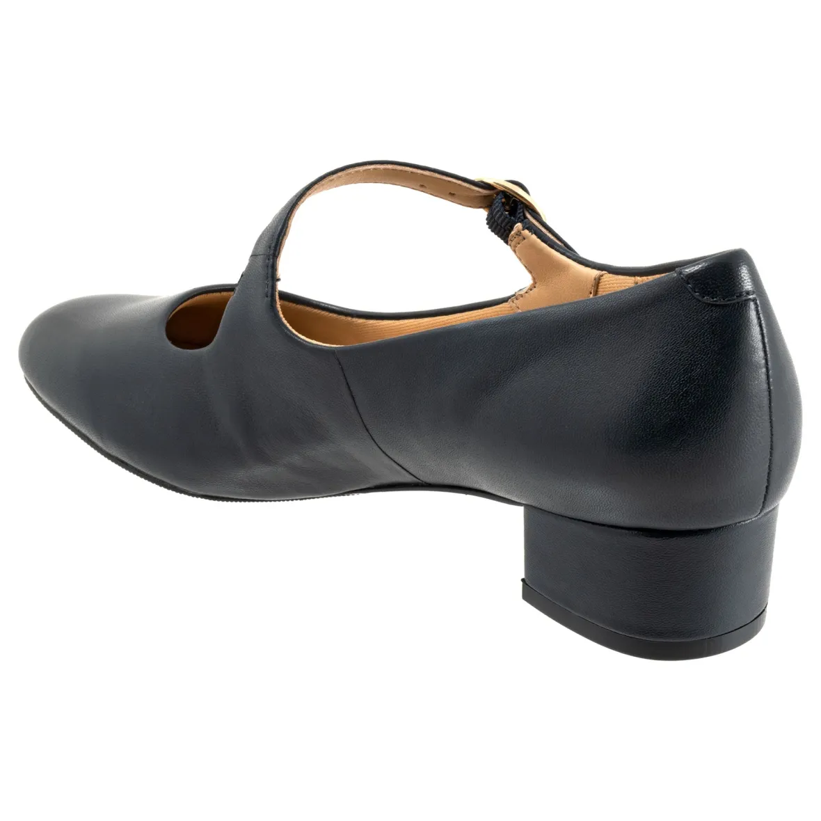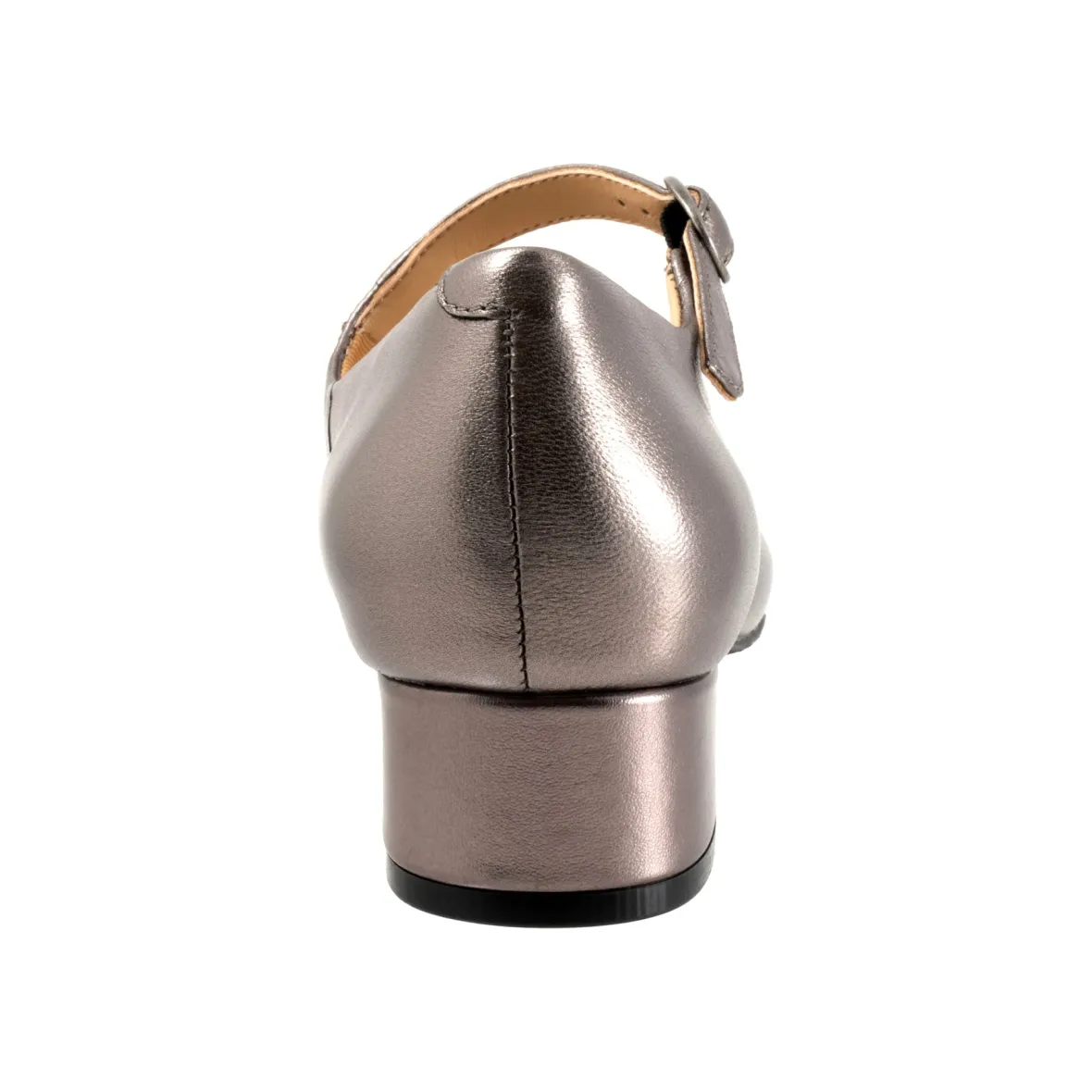 Demi is a blocked heel pump with cris-cross thin bands for a great fit. The cushioned footbed with arch support gives you a comfortable fit for an everyday wear.