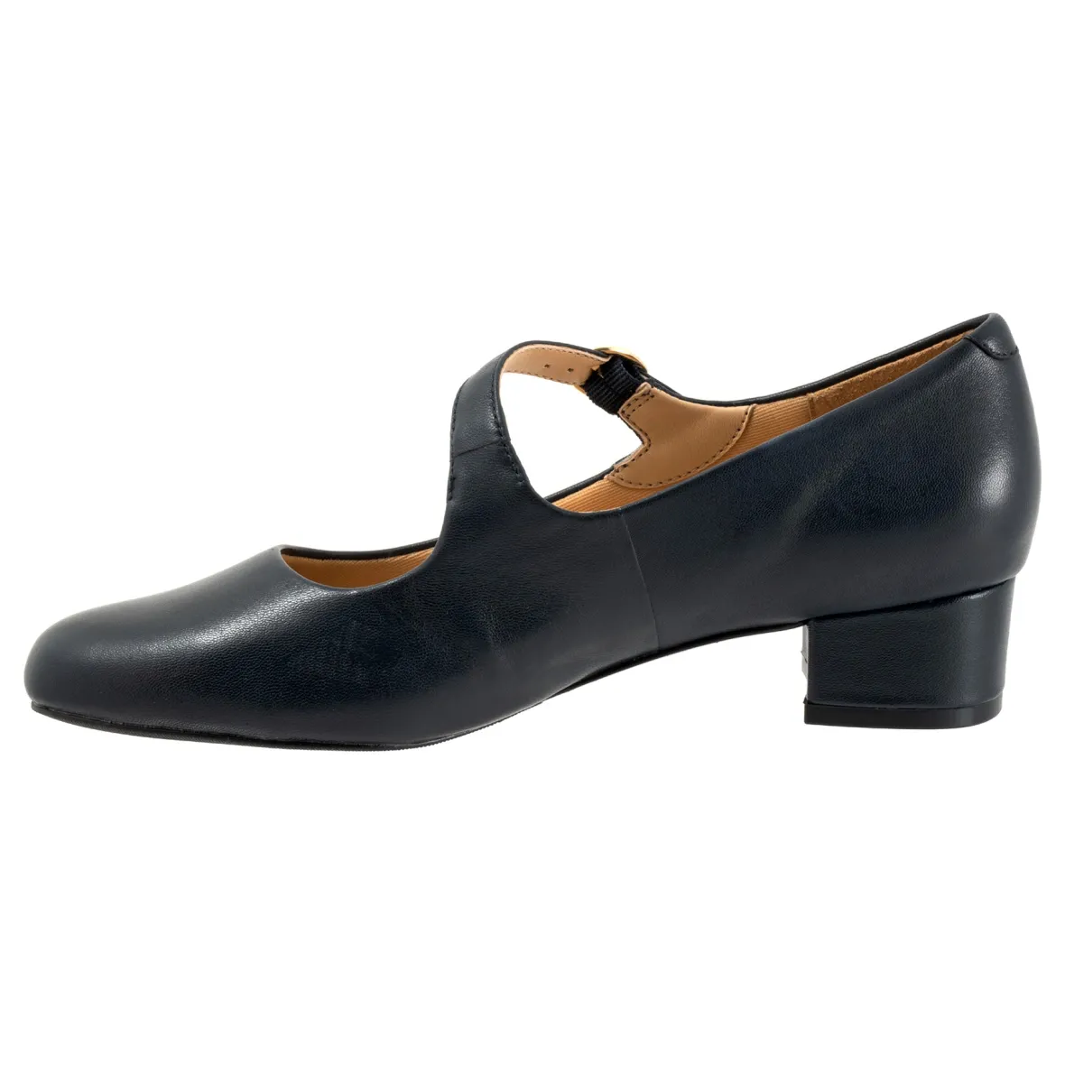 Demi is a blocked heel pump with cris-cross thin bands for a great fit. The cushioned footbed with arch support gives yo…