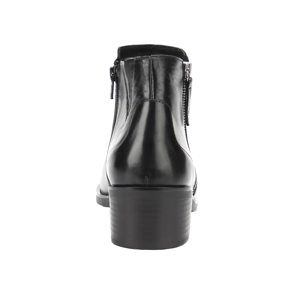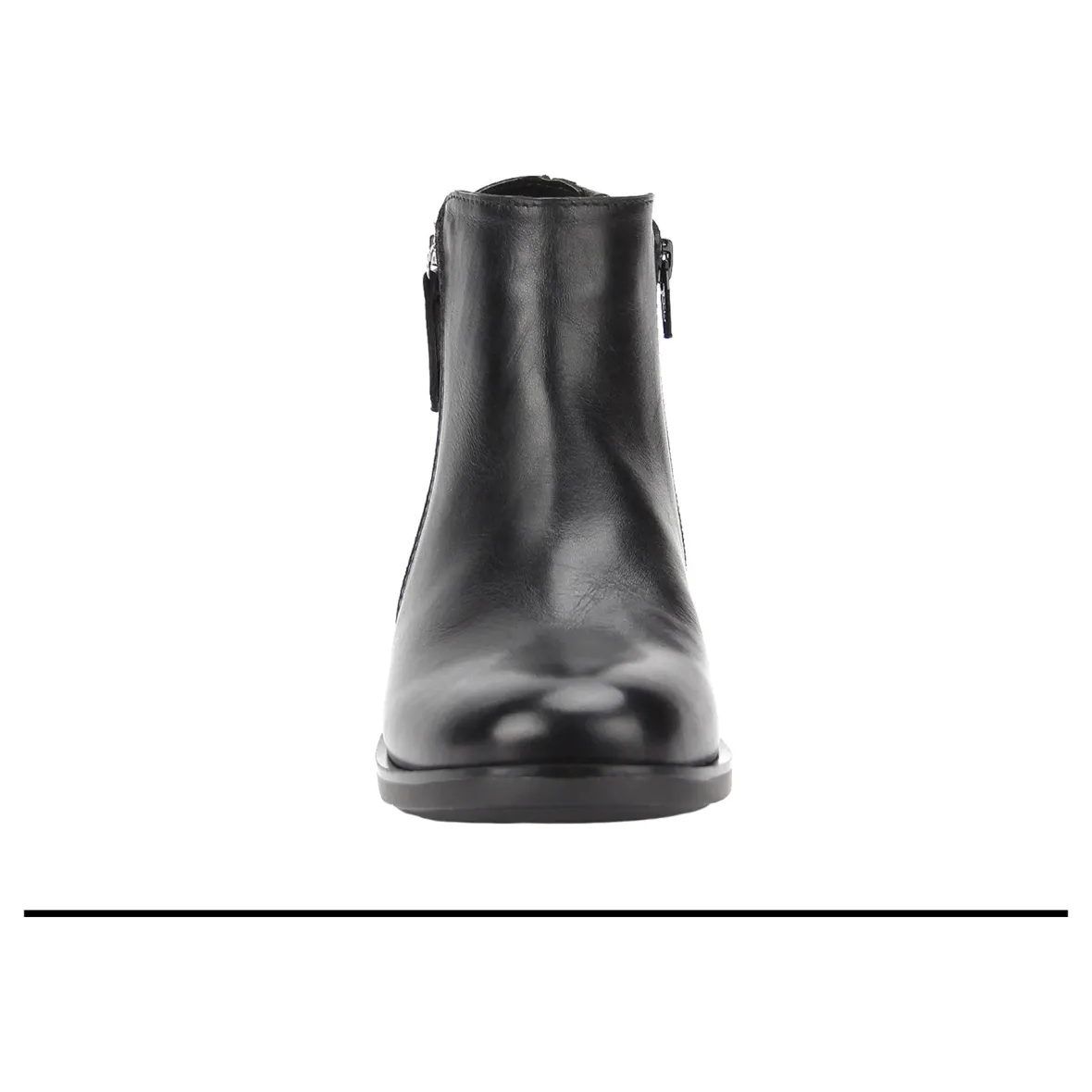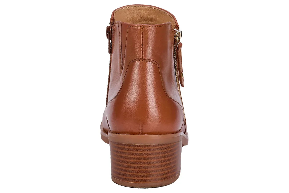Fashion meets function in this classic bootie! Designed on a contemporary block heel with a broad, roomy toe-box, Dixon is made of beautiful soft, leather uppers. Dual zippers are both functional and stylish, allowing you to completely open the bootie and easily slip your foot right in! Soft, knit linings and a sueded microfiber sock liner keep feet dry and comfortable. Our signature Tiny Pillows have been taken up a notch by adding in extra arch support and cushioning to our already popular massaging-effect insoles.