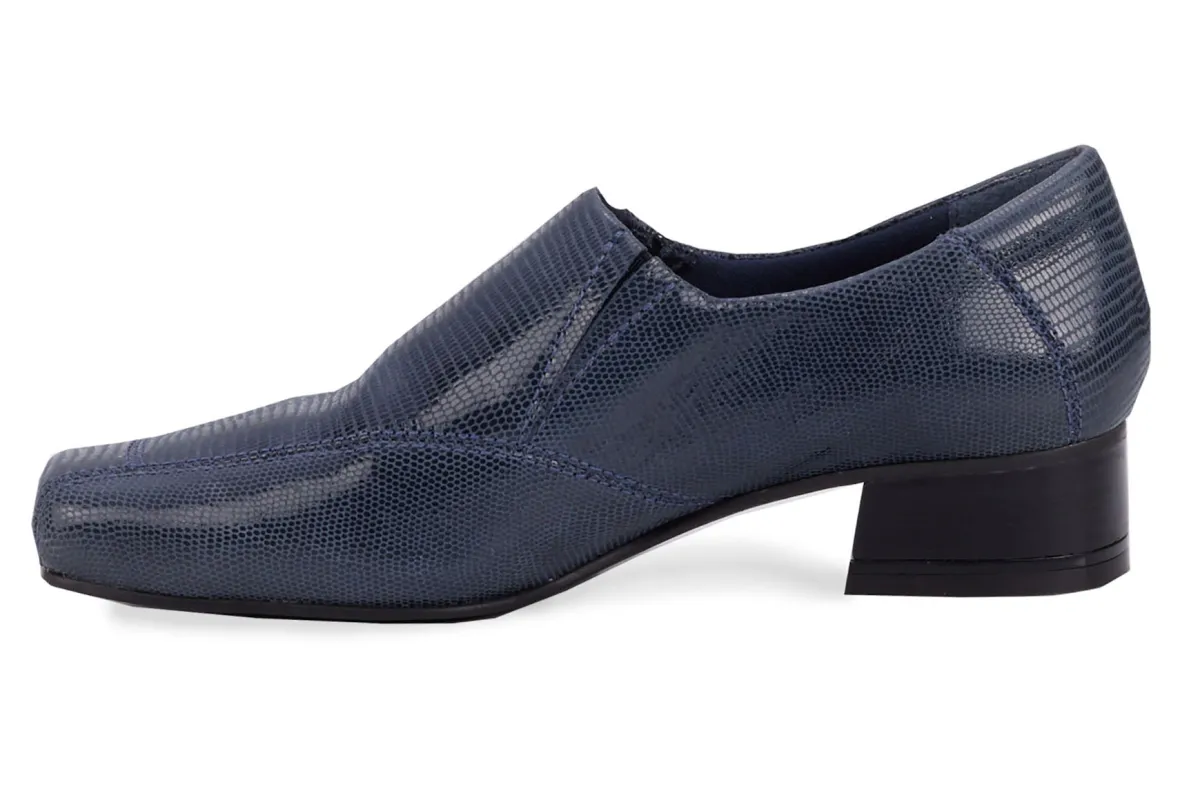 Smartly styled, yet with complete attention to comfort and fit, Eagen by Ros is the perfect combo of a loafer and a pump! Made in lovely lizard print patent leather uppers with dual goring for easy on and off, Eagen has an on-trend squared toe with plenty of toe room. Inside you’ll find our signature cushioned Tiny Pillows insoles and soft, knit linings. Set on a 1 3/8 inch heel, Eagen will keep you walking comfortably and stylishly all day long!Patent Lizard Print leather uppers Squared toe with walled toe box for extra toe room Knit fit lining Cushioned, removable Tiny Pillows insoles Sueded microfabric sock lining Rubber outsole Heel height: 1 3/8 inch Made in Brazil