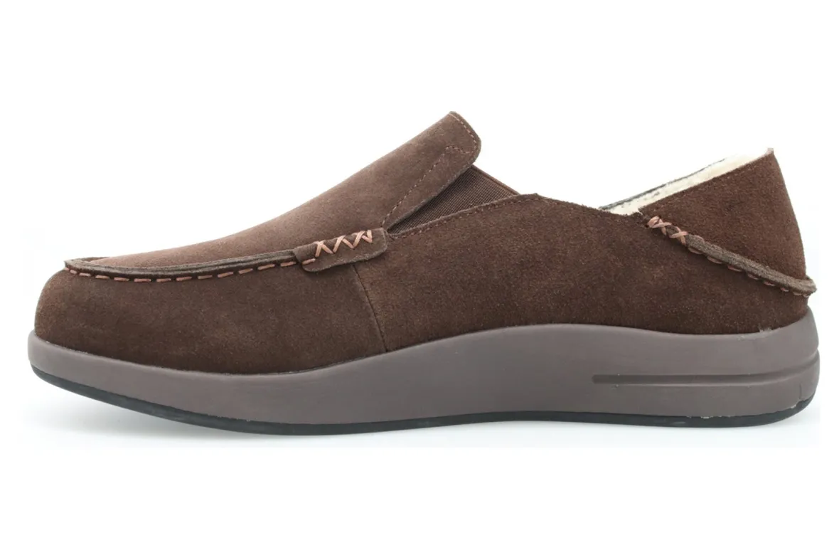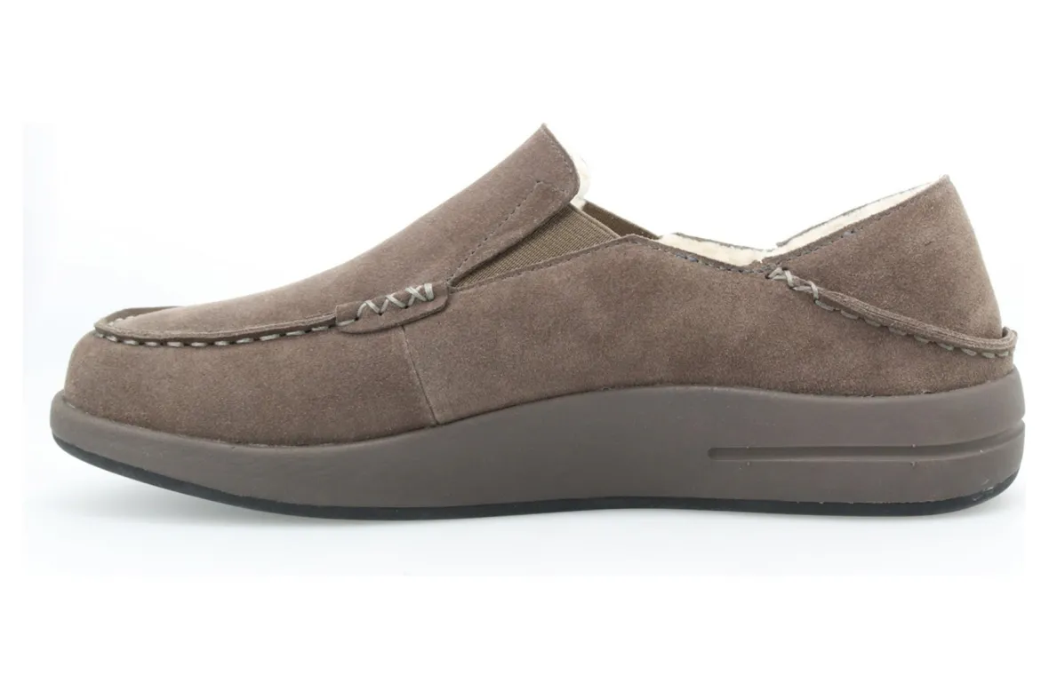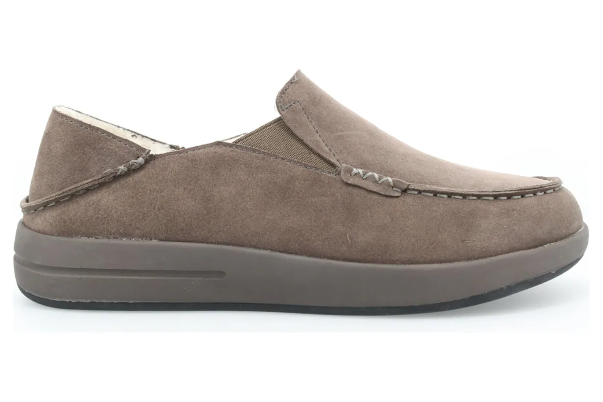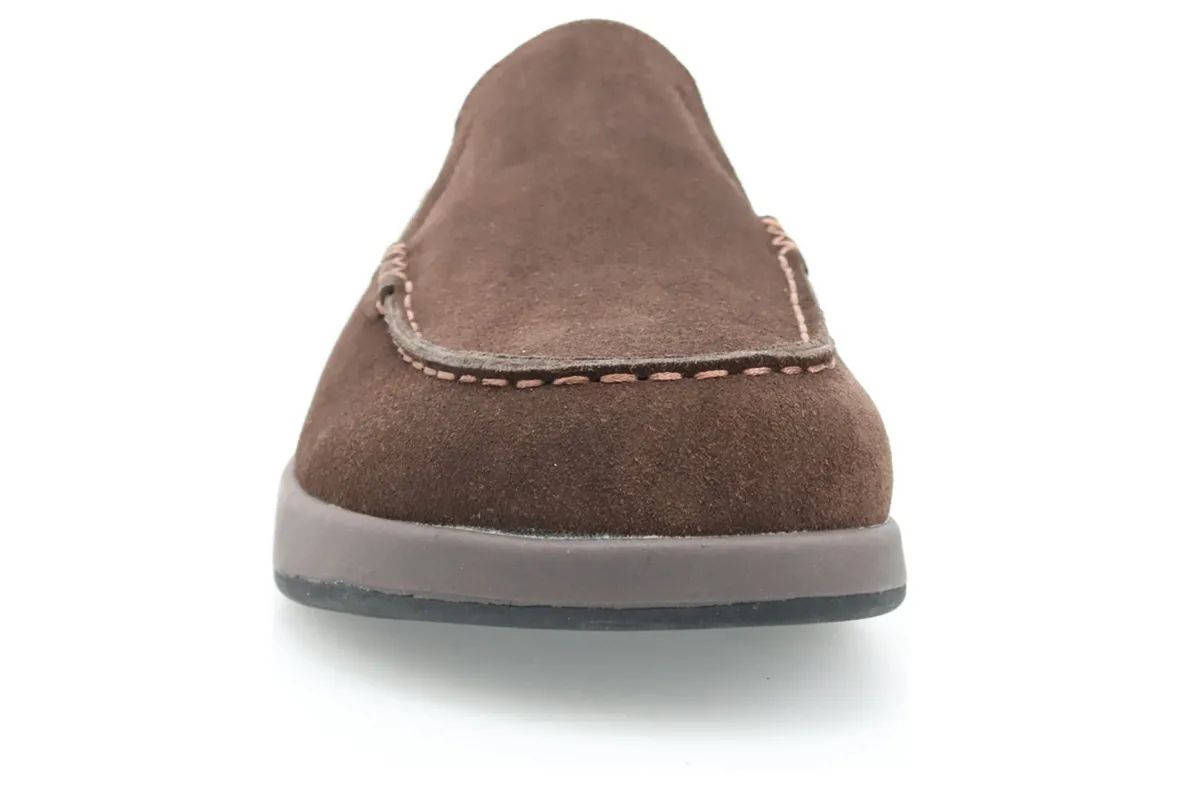 The perfect slipper for slip-on comfort and a rubber outsole for traction on outdoor surfaces Suede upper with fold-down heel counter for slip-onconvenience. Faux shearling lining for warmth.