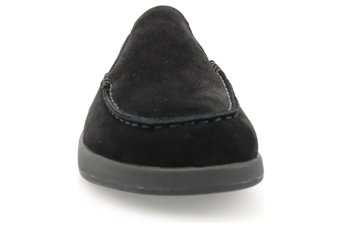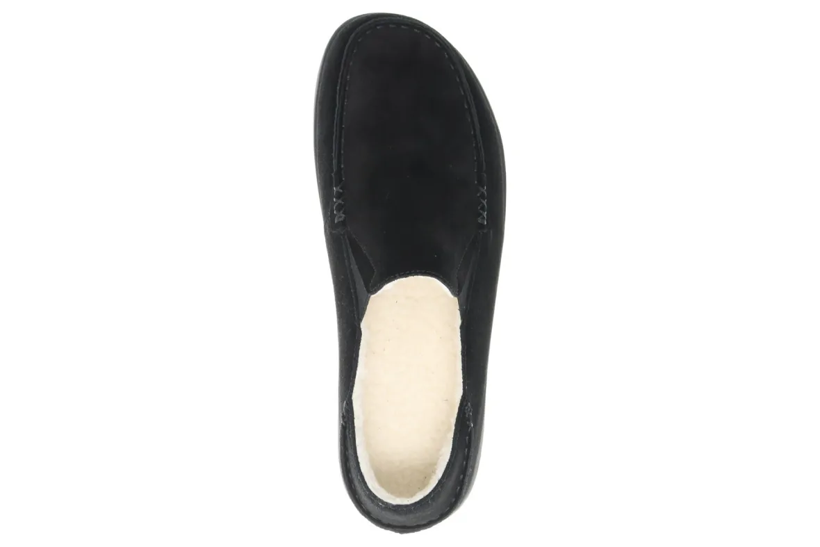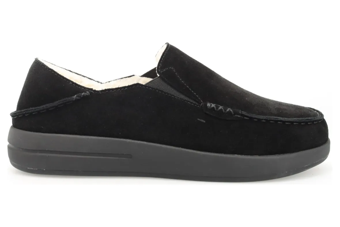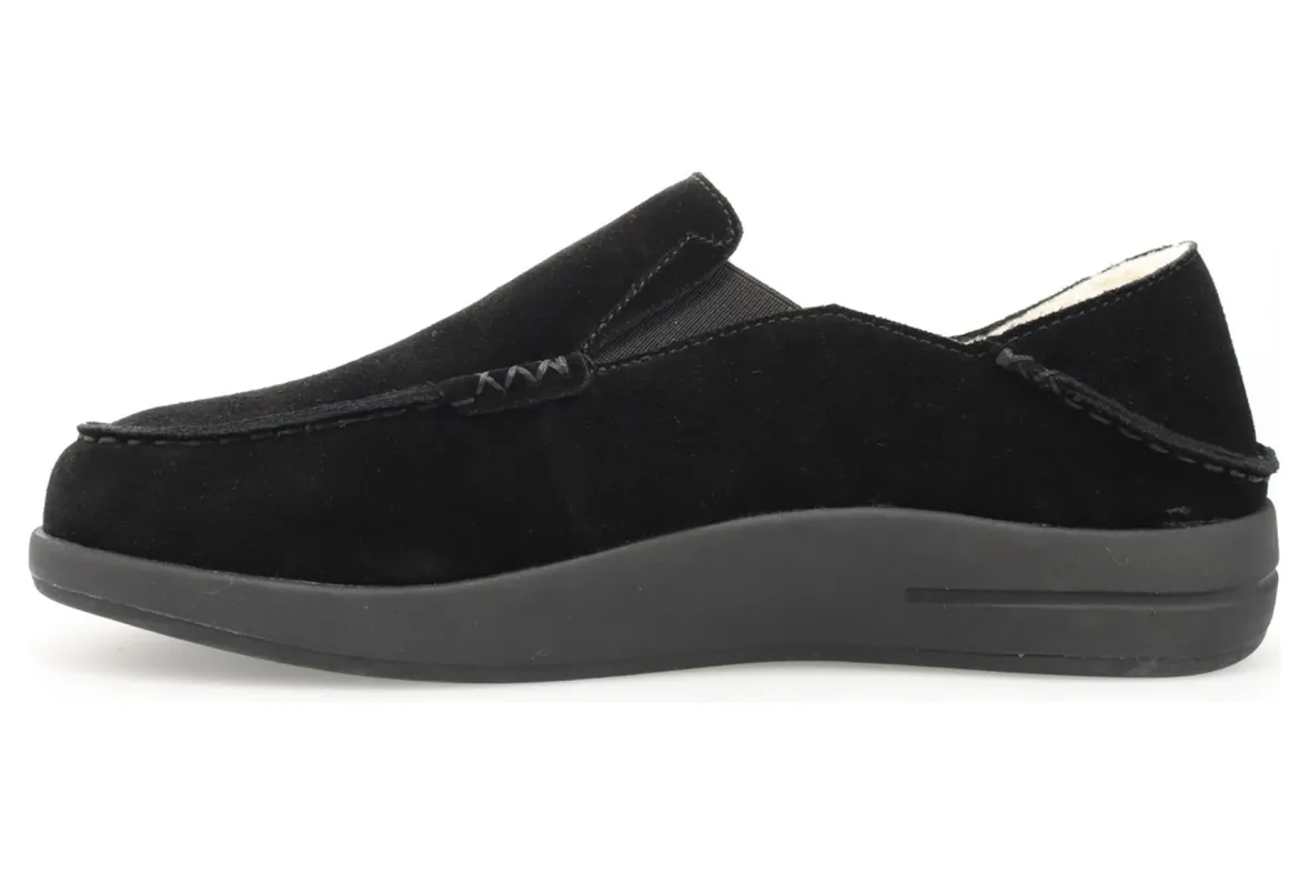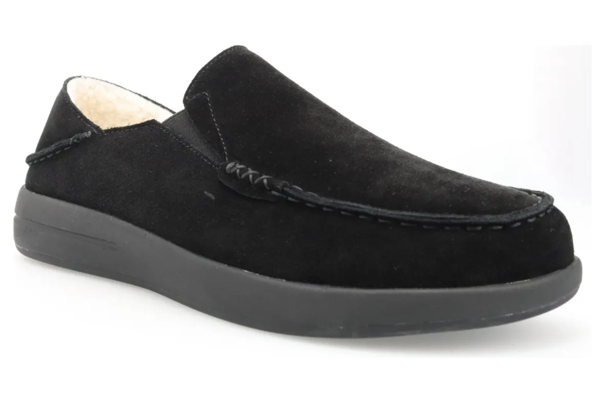 The perfect slipper for slip-on comfort and a rubber outsole for traction on outdoor surfaces Suede upper with fold-down heel counter for slip-onconvenience. Faux shearling lining for warmth.