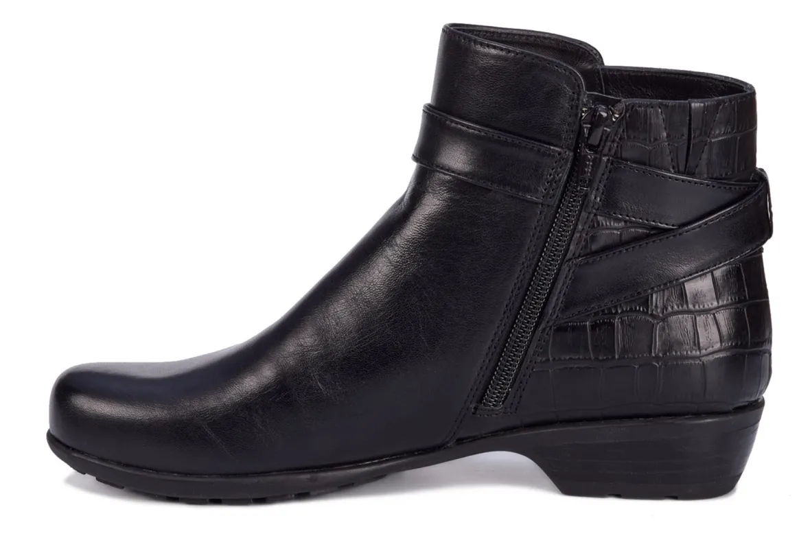 An outstanding addition to your fall wardrobe, Ellis is a stylish shootie that combines comfort, fit and style! Designed on a contemporary block heel with a broad, roomy toe-box, Ellis is made of beautiful soft, leather uppers. An outside zip is both functional and stylish, while a discreet instep gore provides additional fit and flexibility. A padded collar keeps your heel from slipping and sueded microfiber linings keep feet dry and comfortable. Our signature Tiny Pillows have been taken up a notch by adding in extra arch support and cushioning to our already popular massaging-effect insoles.