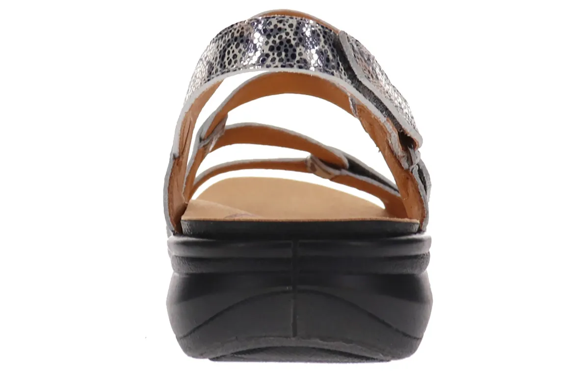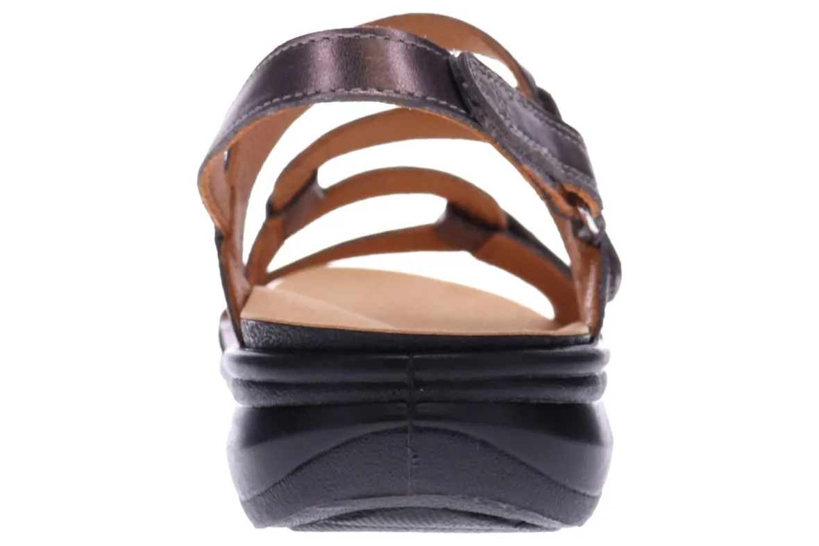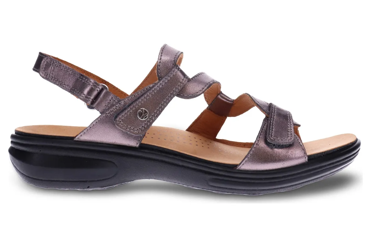 We’ve struck the perfect balance of contemporary design and optimum comfort when creating the Emerald sandals. Crafted from soft luxe leather, these women’s sandals with adjustable straps cradle the foot so you feel supported as you stroll. This 3 strap sandal fits both narrow and wide feet and has a molded footbed that can be easily removed to fit your orthotics, AFO’s or braces.FEATURES- Premium leather upper and lining.- Contoured footbed with arch support- Removable footbed to insert custom orthotics, AFO’s and braces- Received APMA Seal of AcceptanceSIZE & FIT- Fits true to size- Those between sizes may consider a size bigger or opt for the wide fit- Adjustable straps- Includes revere strap extensions for a wider fit
