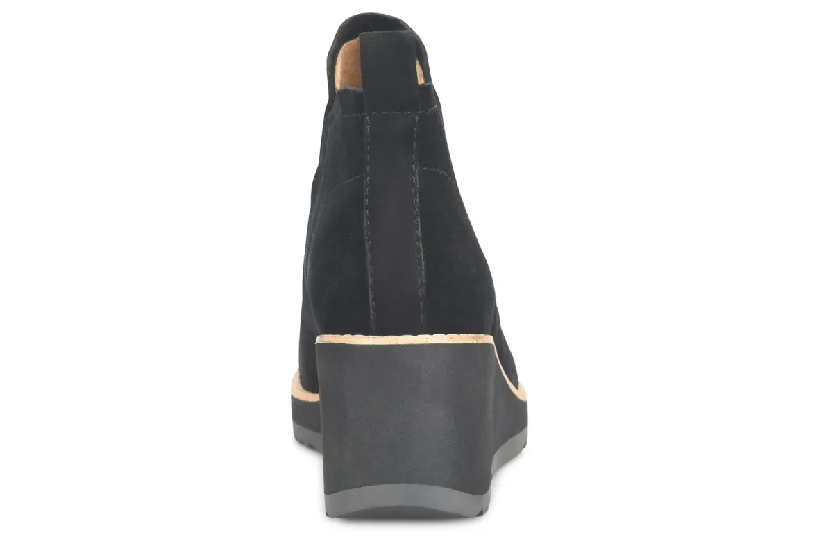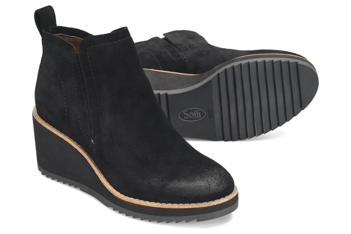Sofft Emeree is a stylish Chelsea boot for any type of weather. Features include waterproof suede and leather uppers, cushioned footbed and TPR outsole. A microfiber lining, back pull tab, stretch goring, 5 ¾ inch shaft height and 2 ¾ inch heel height elevates these versatile women’s boots.