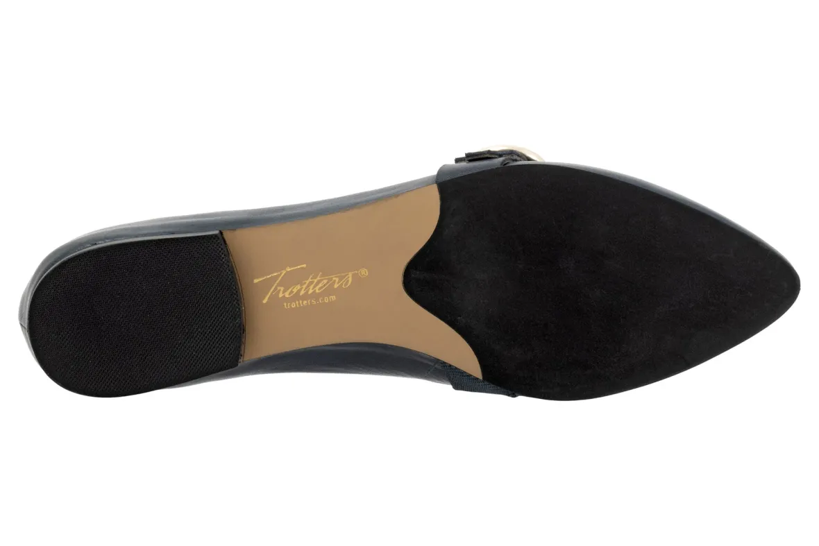 The Emmett pointed-toe flat with cute buckle strap made of a combination of leather and goring. A fully leather-lined interior and cushioned footbed provide luxurious comfort.