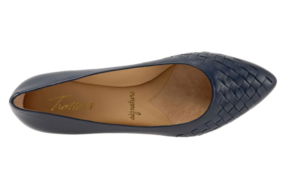 Trotters Estee Woven are comfy and hand-woven flat shoes. Prominent features include woven leather uppers, cushioned foo…