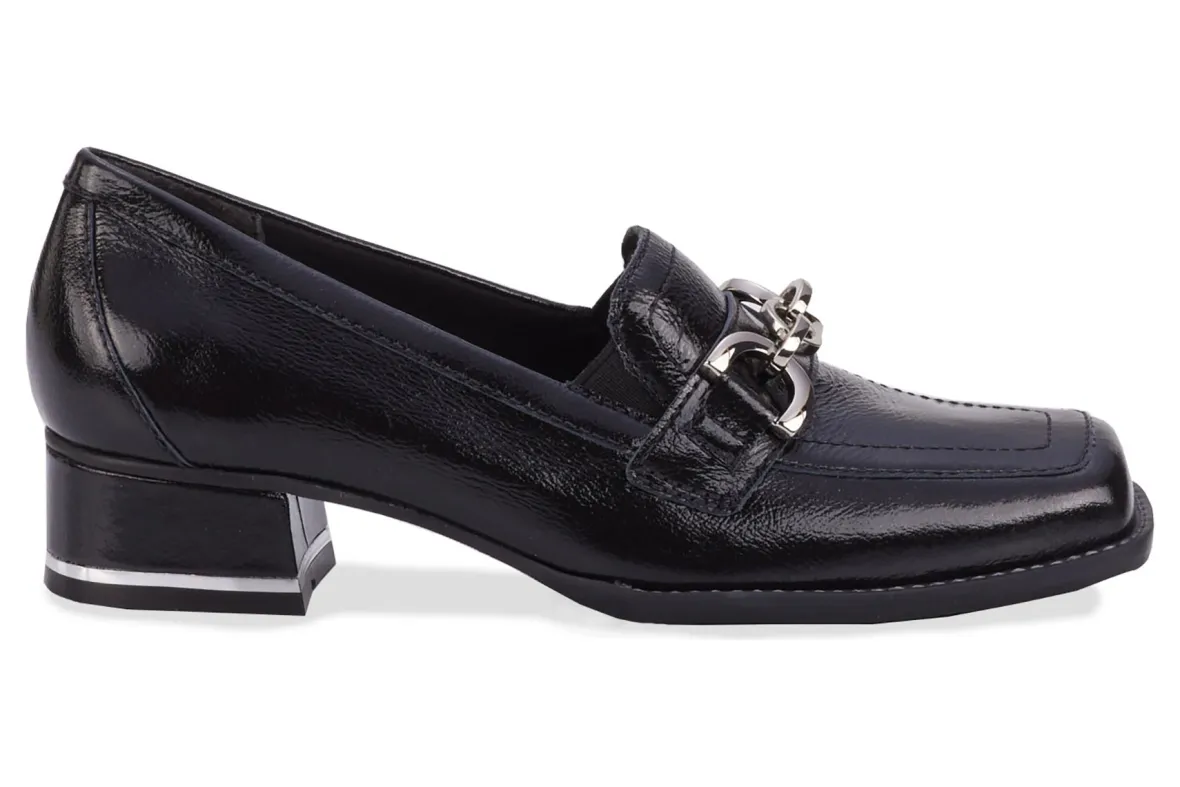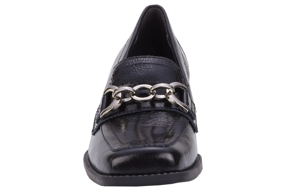 Sophisticated, stylish and comfortable is what you get with Evie by Ros. An on-trend squared toe provides plenty of toe room. Double goring on the vamp allows easy on and off. Metal chain detailing and a metal band around the base of the heel add pizazz to your overall look. Inside you’ll find our signature Tiny Pillows insoles and soft, knit linings. Set on a 1 3/8 inch heel, Evie will keep you walking comfortably and stylishly all day long!Available in shiny leather or soft suede Squared toe with walled toe box for extra toe room Dual gore on vamp Knit fit lining Cushioned, removable Tiny Pillows insoles Sueded microfabric sock lining Rubber outsole Heel height: 1 3/8 inch Made in Brazil