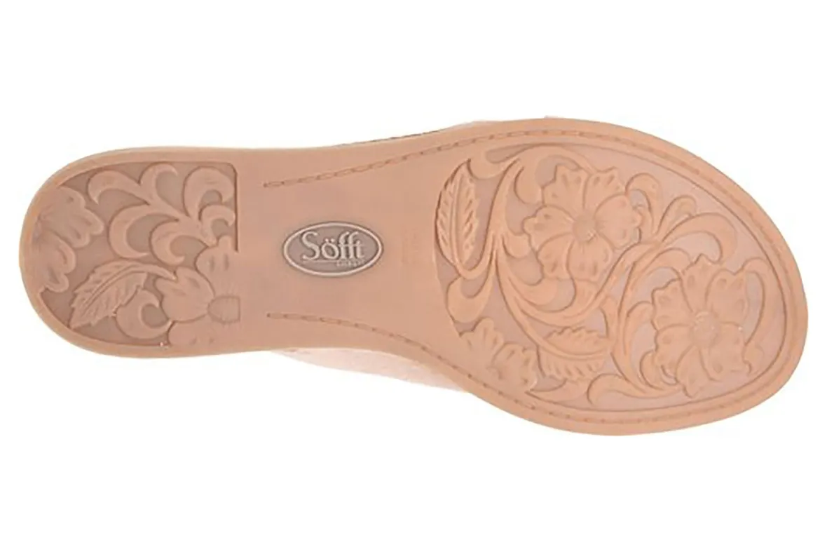 Sofft Evonne is a cozy Euro-inspired flat sandal. Italian leather uppers, back zipper, raised foam footbed and 1-inch stacked heel helps elevate these flats. These sandals feature a round, open toe design that cools feet and a long-lasting leather and synthetic lining.