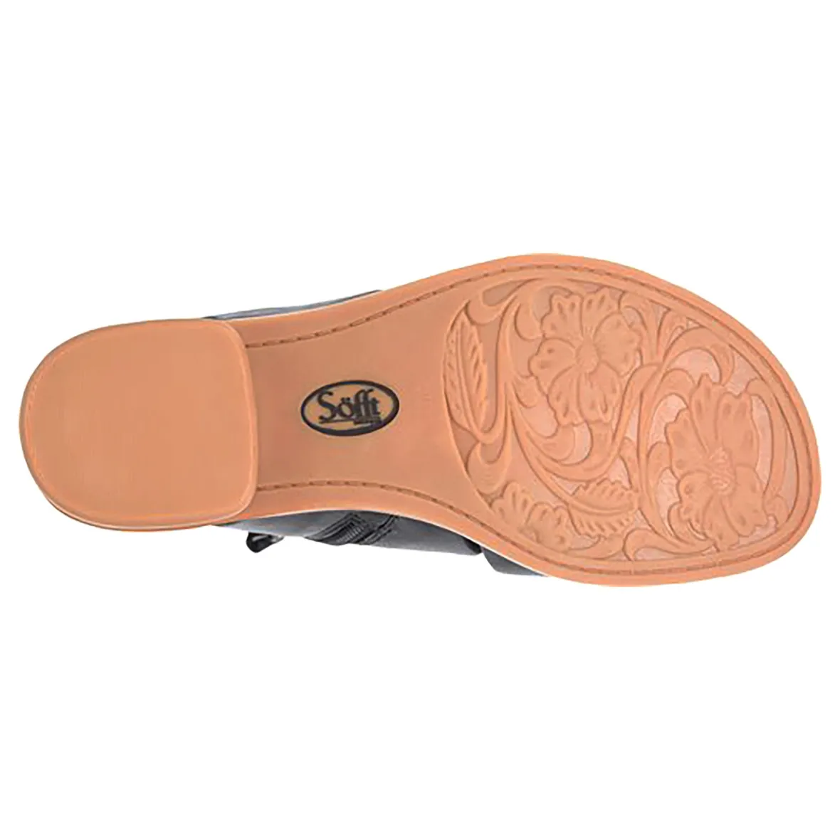 Soft synthetic-lined footbed, cushioned for extra comfort Flexible, slip-resistant and lightweight TPR outsole Stacked heel and leather welt Heel Height: 1 1/2 inches