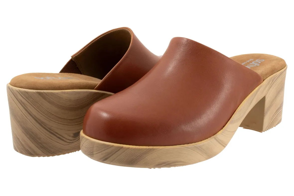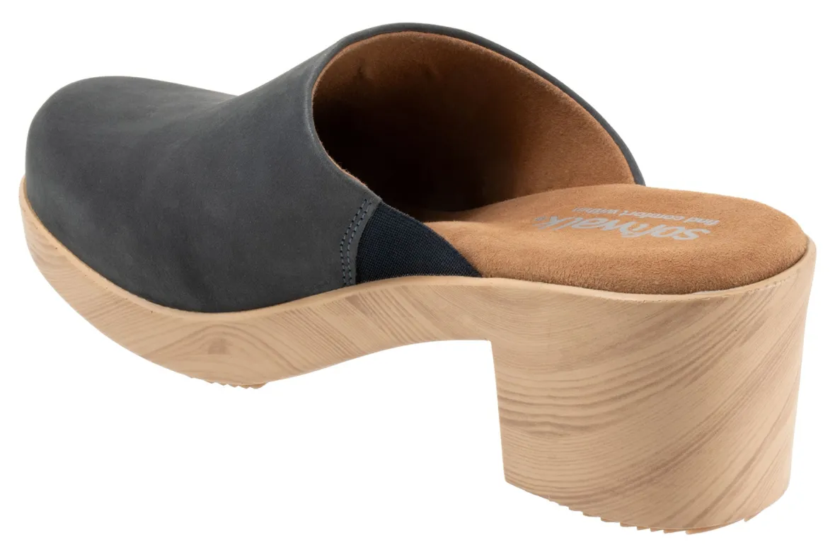 The Felida mule has a sole with the look of a wooden clog but is actually a lightweight polyurethane sole with rubber insert on the outsole for sure footing. The Felida features an inner elastic goring for a comfortable and flexible fit. The cushioned footbed is lined in soft suede leather and has arch support.