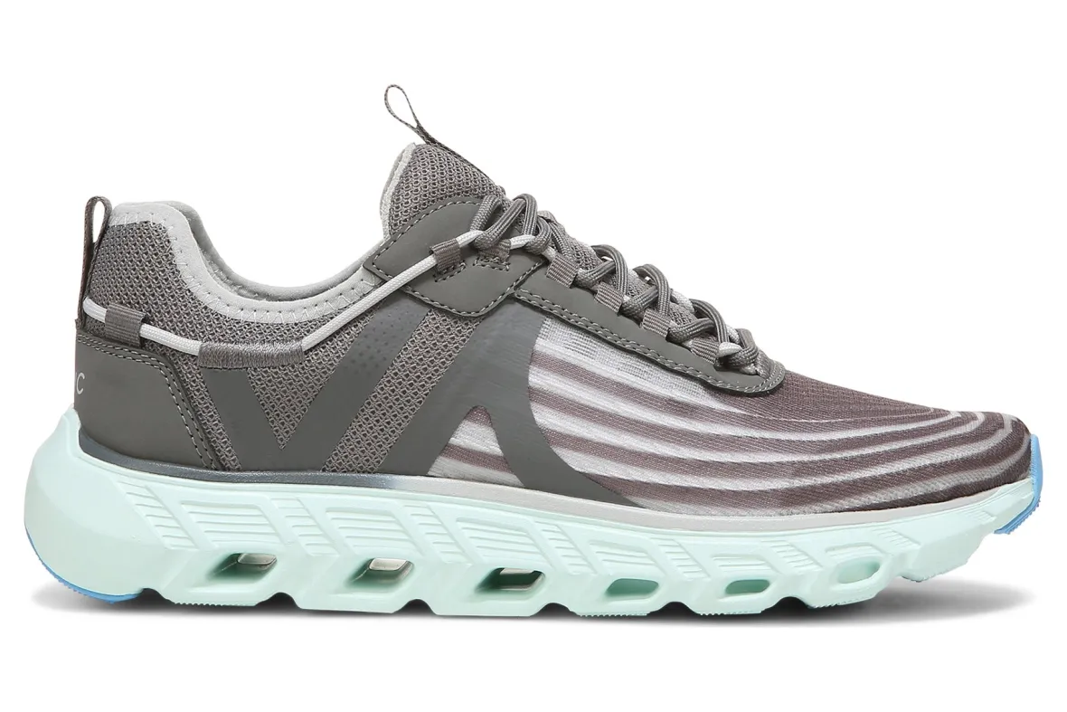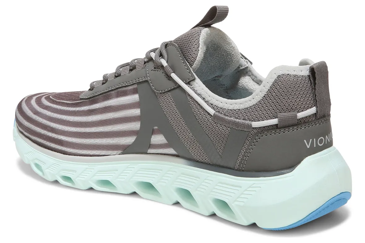 Vionic Fortune is a lightweight and flexible performance sneaker. This comfortable active shoe has synthetic knit uppers, removable mesh-covered EVA footbed linings and durable rubber outsoles. This elite walking shoe has Advanced Motion System (AMS) technology, an innovative sole, 1 ¼ inch platform height and 2-inch heel height.These sneakers have unparalleled stability, cushioning, flexibility, and arch support and are designed to help alleviate heel pain often caused by plantar fasciitis or achilles tendonitis.