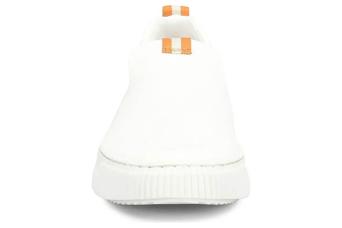 Eco-conscious with a sporty twist -our cool, modern slip-on designed for all-day comfort. Crafted with a lightweight mesh upper made from recycled water bottles, our lightweight Frayda sneaker is perfected with contrasting racing stripe accents and our supportive, cushioned footbed.