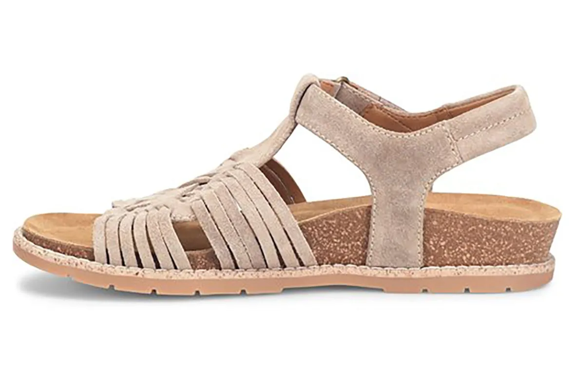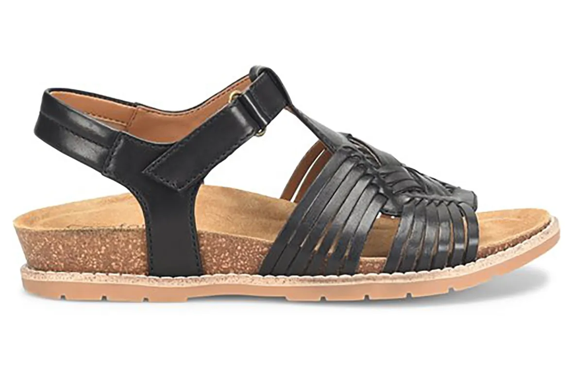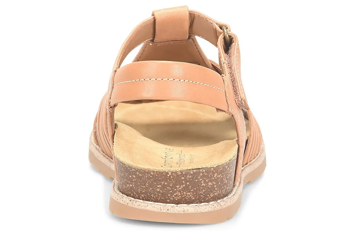 Comfortiva Gladia updates a traditional huarache for a modern walking sandal. Hand-woven upper and plush footbed supports feet and provides added comfort. Comfortiva Gladia also offers an adjustable hook and loop strap, padded slingback strap and cork midsole.