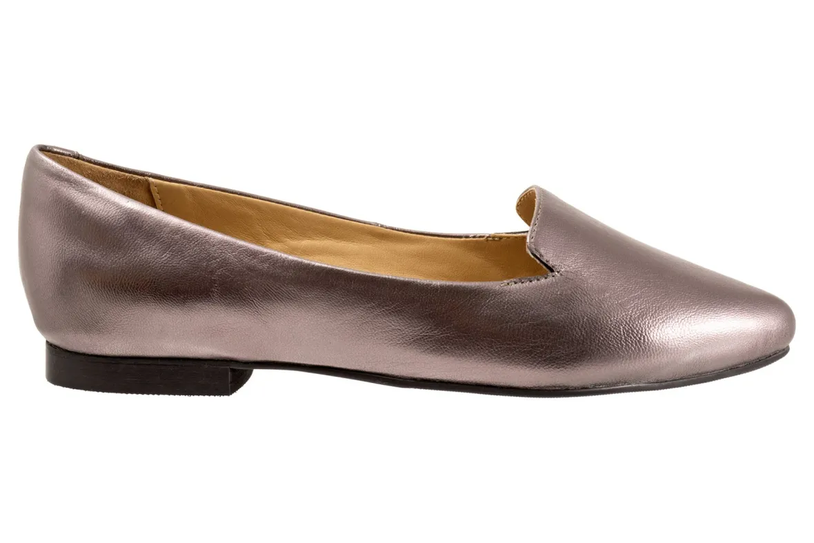 Trotters Harlowe is a little pointed slip-on with just a touch of interest along the top line. Playful colors and classics make this the go-to flat for any season. A nicely padded footbed makes for a cozy comfortable feeling.