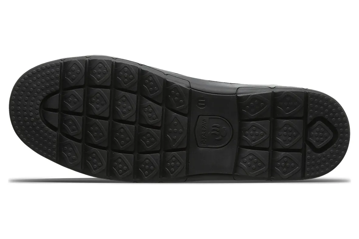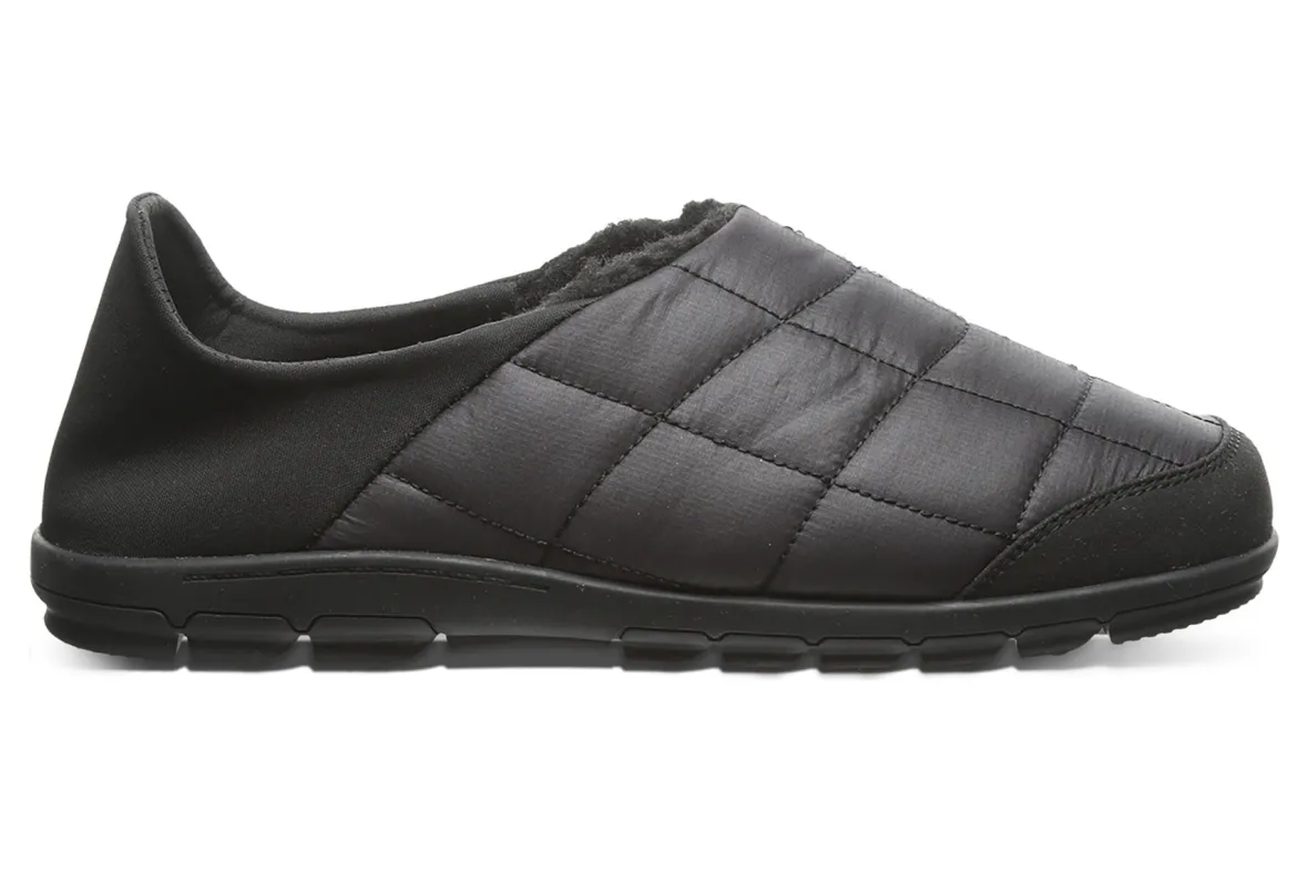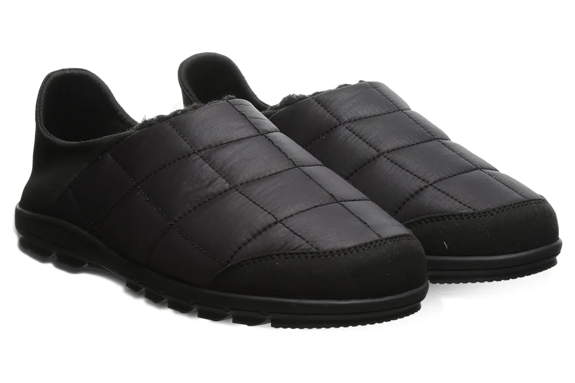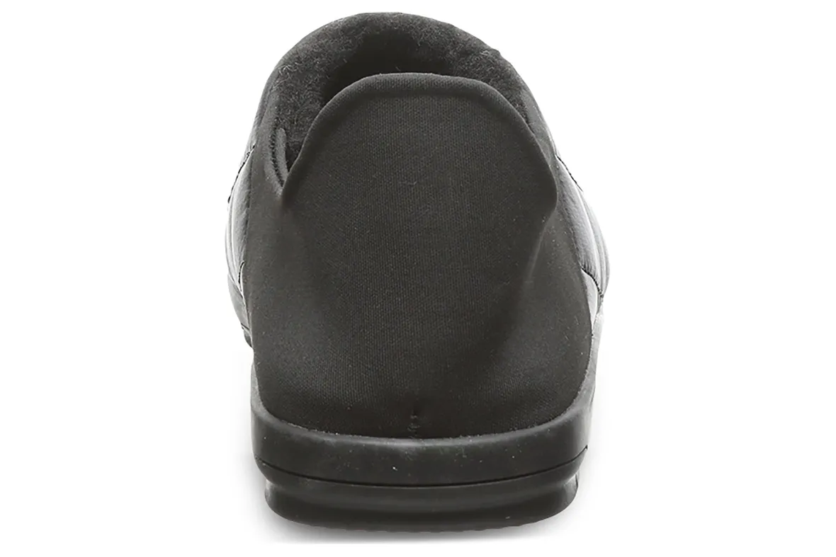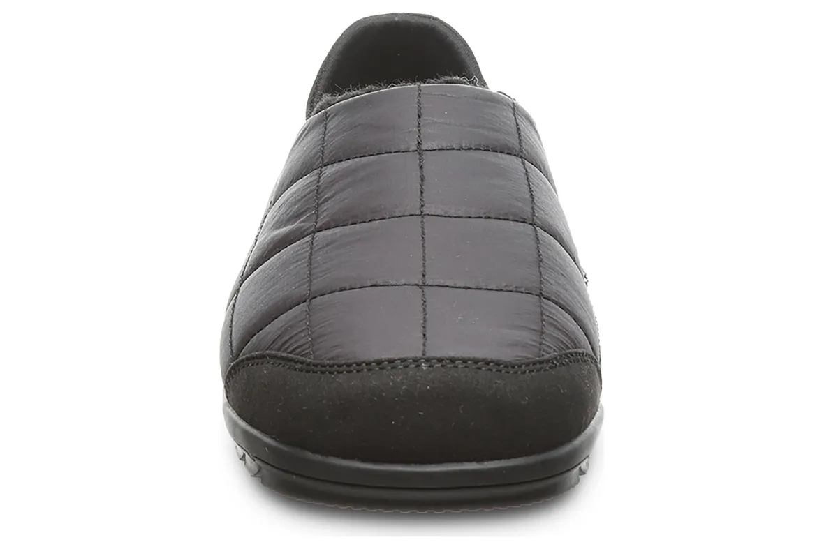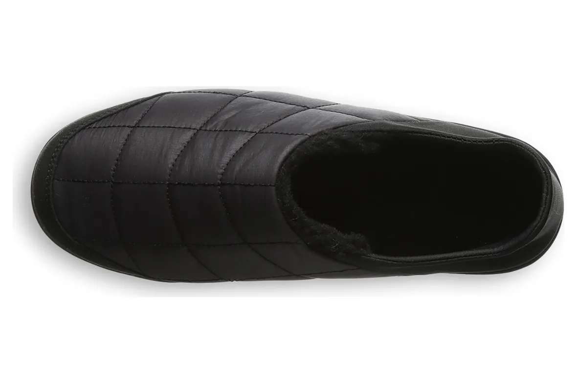 Bearpaw Harry is a nylon slipper for cold days. These slippers have quilted nylon uppers, neoprene heel backing, comfort sheepskin footbed and rubber outsole. A wool lining, round toe, slip-on construction and 1-inch platform height outlines these reliable slippers.