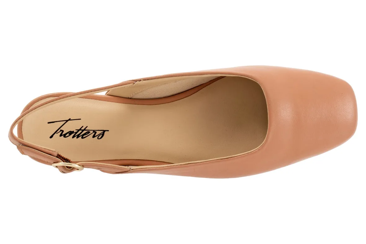 Trotters Holly is a stylish slingback flat built for comfort. These flat shoes have leather uppers, cushioned leather footbed, square toe and rubber outsole. An adjustable slingback strap buckle closure, low top silhouette and ⅝ inch heel height makes these flats stand out from the crowd.