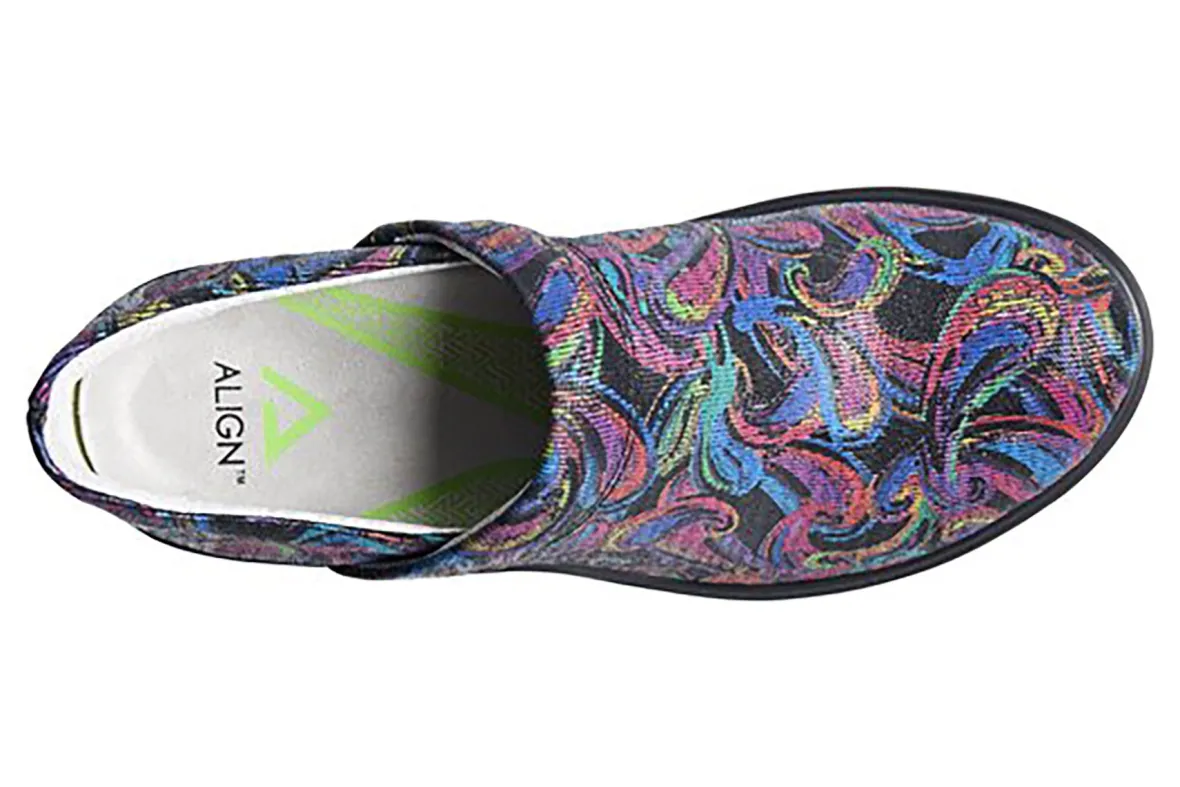 Align Indya is a comfortable and trendy clog. Features include leather or PU uppers, orthotic insole, padded heel collar and slip-resistant outsole. Linings made with recycled materials and slip-on construction will put these clogs on your list of favorite shoes.