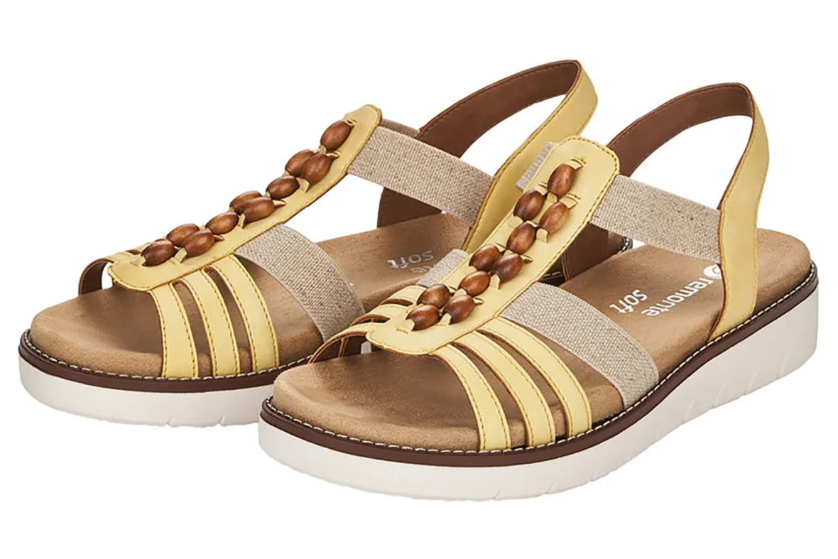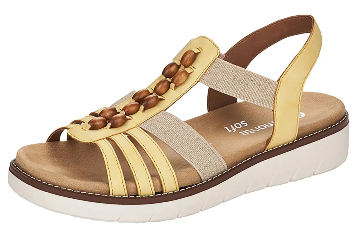 Ladies brown slip on sandals with decorative beads.