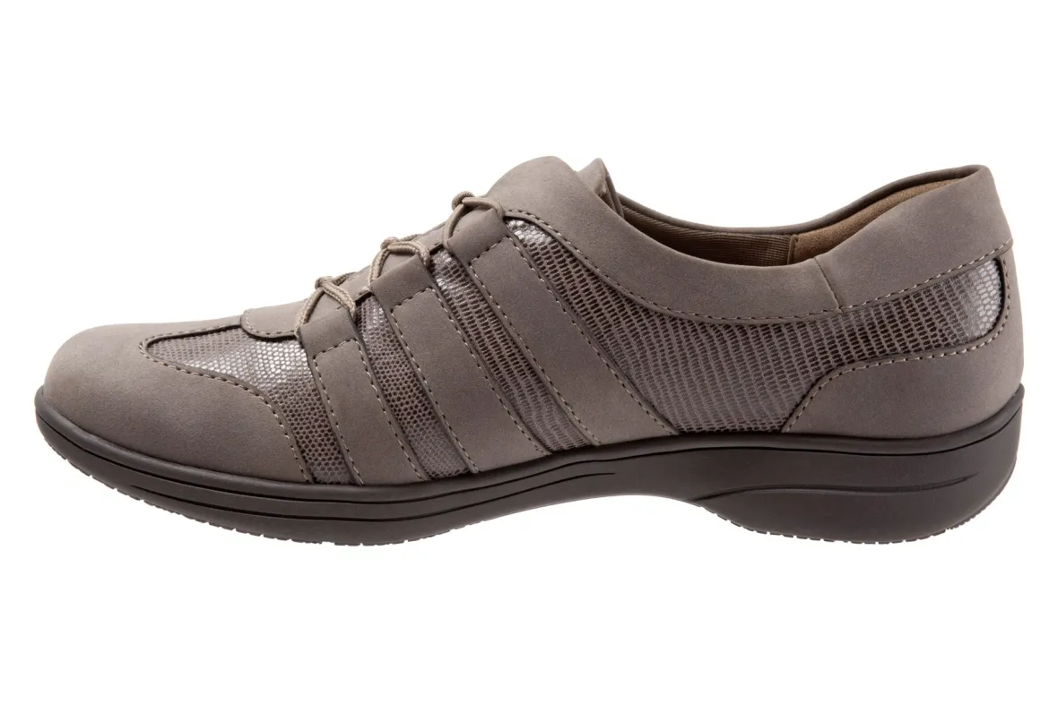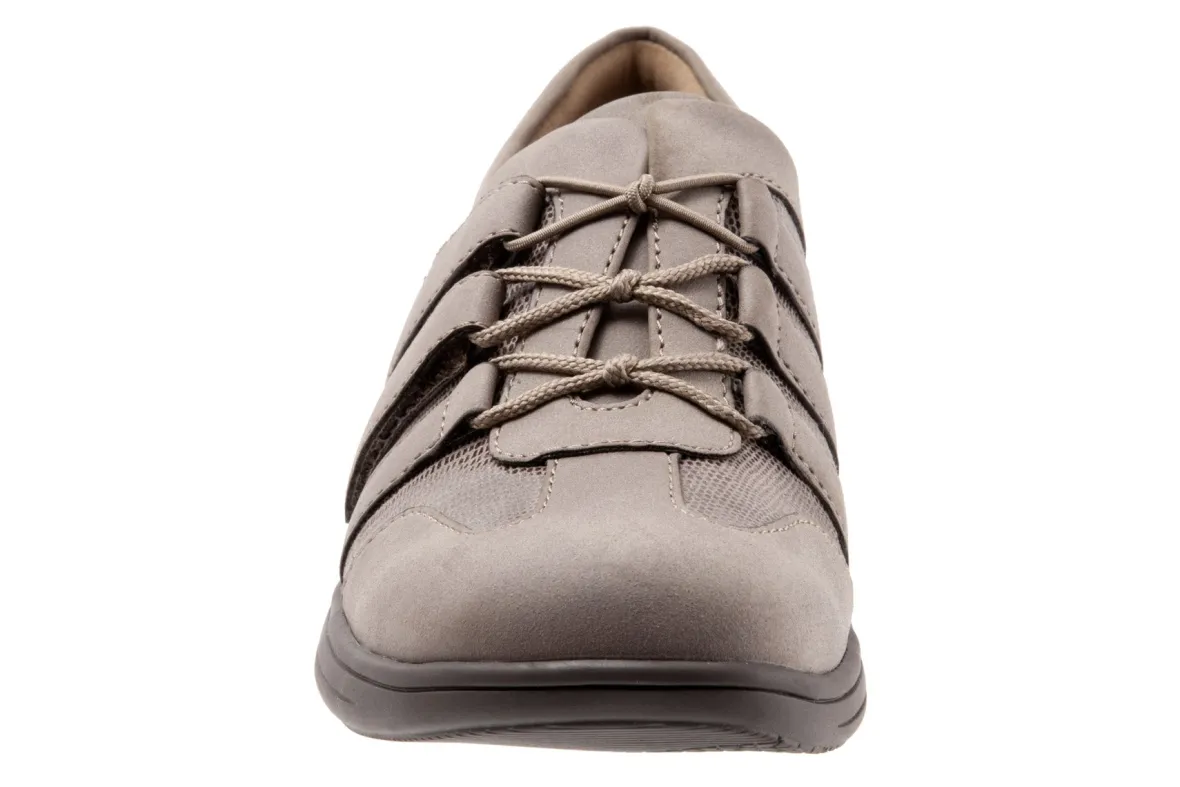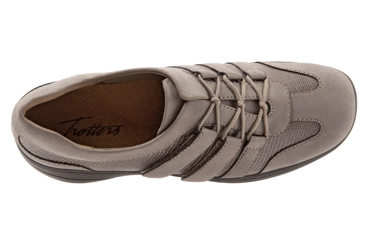 Trotters Joy is a chic and sporty walking shoe for any occasion. Prominent features include man made uppers, removable cushioned footbed and rubberized outsole. These comfortable women’s sneakers also have adjustable hook and loop straps, padded collar, soft lined insole and 1 ¼ inch heel height.