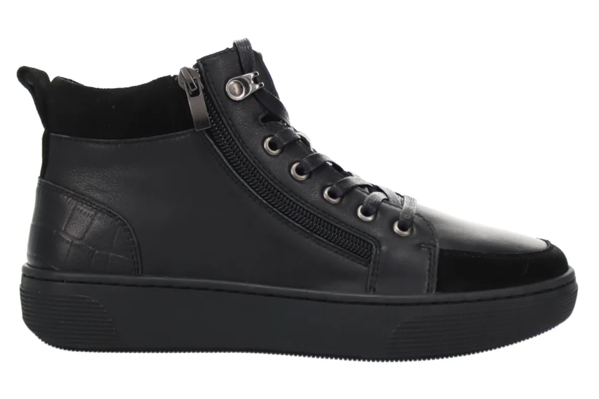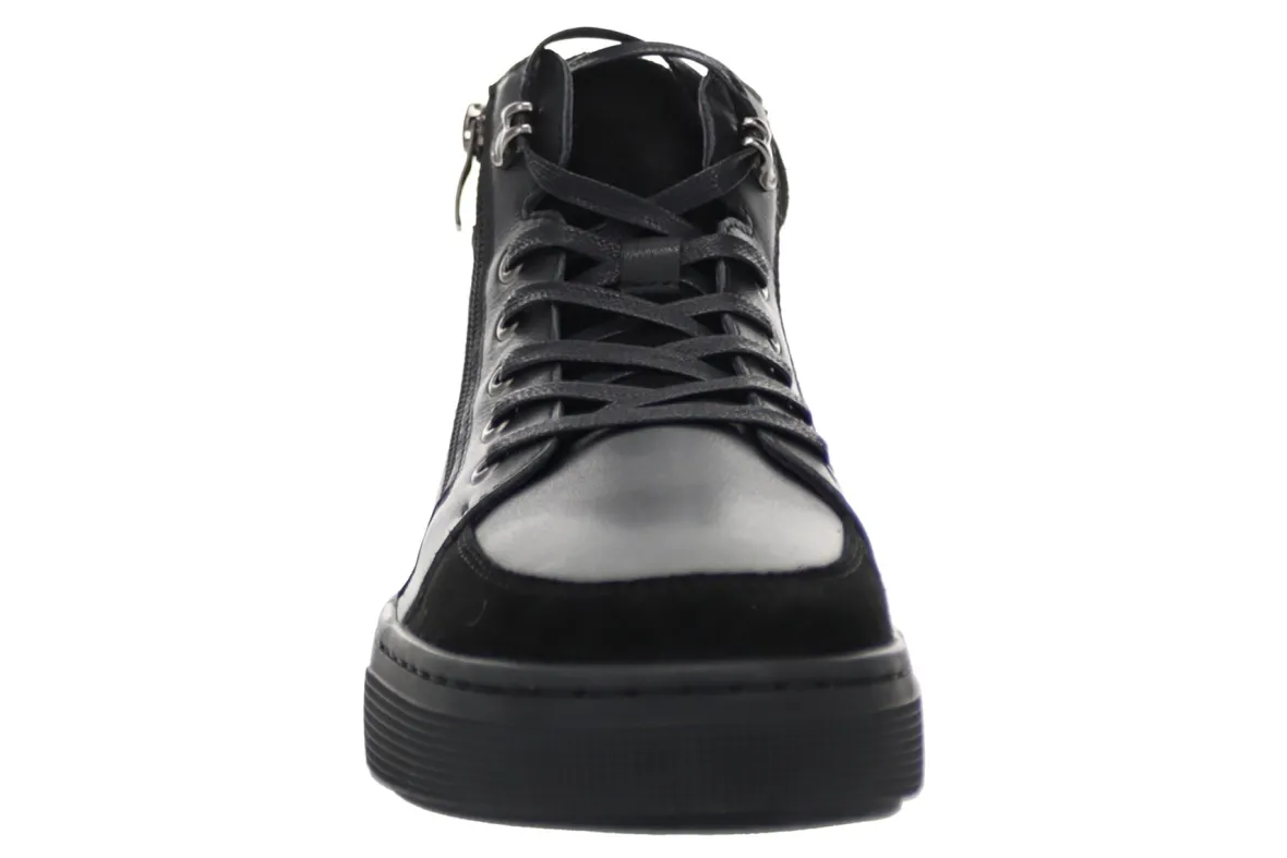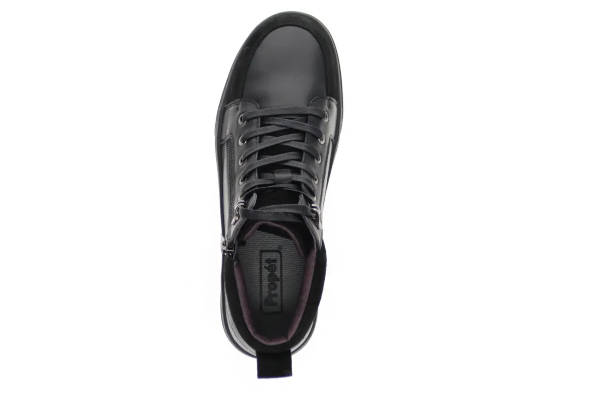Soft leather upper with embossed leather heel accent, side zip and functional lace for maximum adjustability.