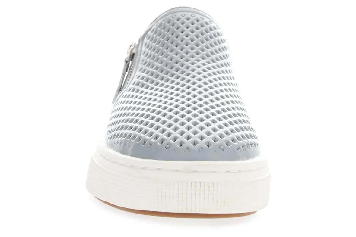 Perforated leather with side zip and tassle make this sneaker light and breezy. Breathable open cell PU with added heel cushion moves moisture from foot for a cooler, healthier footbed. Rubber cup outsole with our shock absorbing DuroCloud™ foam embedded midsole for responsive cushion. Removable footbed, DuroCloud™, A5500 pending.r