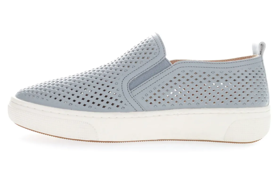 Perforated leather with side zip and tassle make this sneaker light and breezy. Breathable open cell PU with added heel …