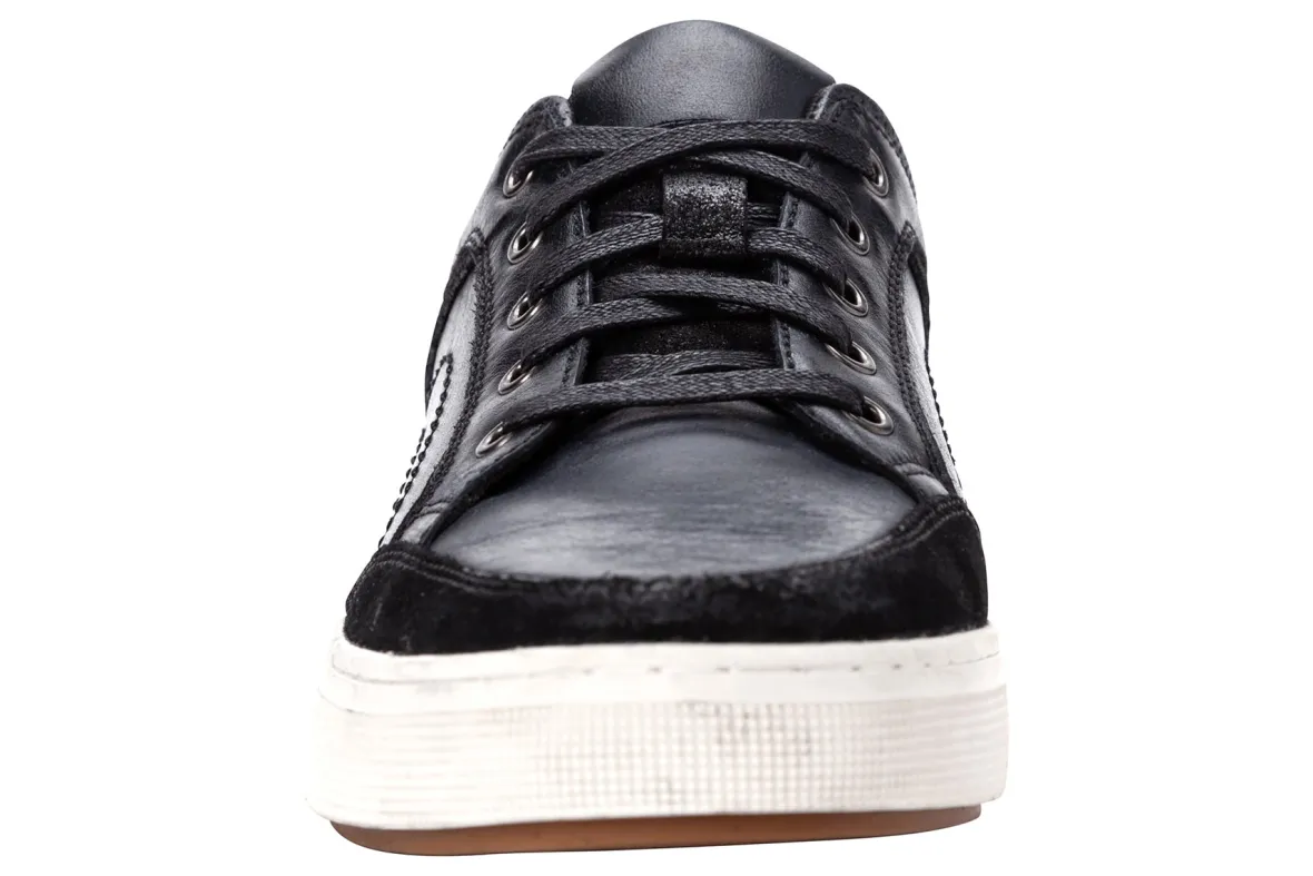 Propet Kellen is a sleek and casual sneaker. These trendy shoes have leather and suede uppers, padded collar and tongue and a durable rubber cup outsole. An Open Cell foam insole, lace-up closure, round toe and textile lining will make these attractive sneakers a new favorite.
