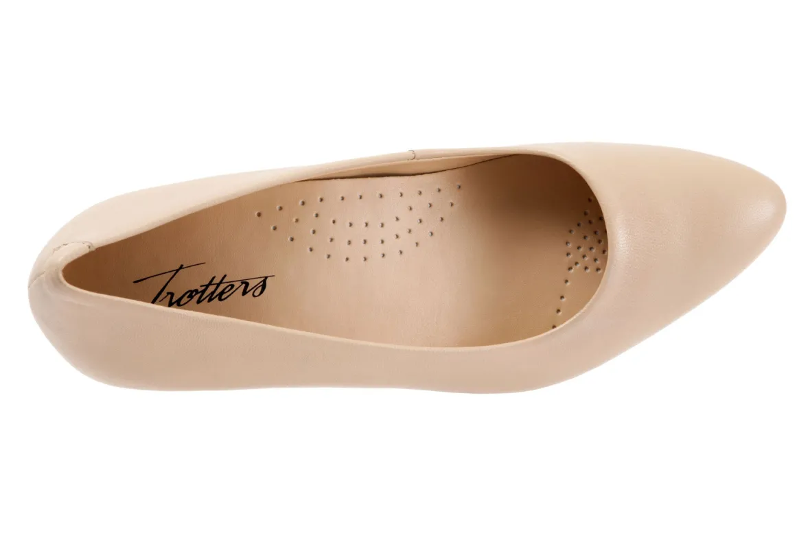 Trotters Kiera is an elegant and comfortable heel pump. Leather uppers, a removable memory foam footbed and a 2-inch heel height will make these a new favorite. Other features include a synthetic lining, pointed toe and a flexible rubberized outsole.