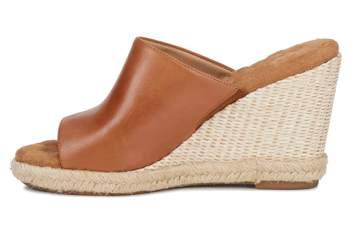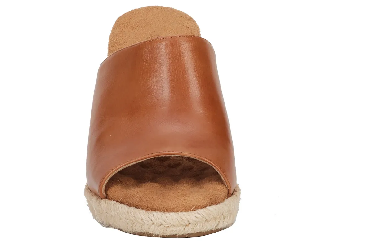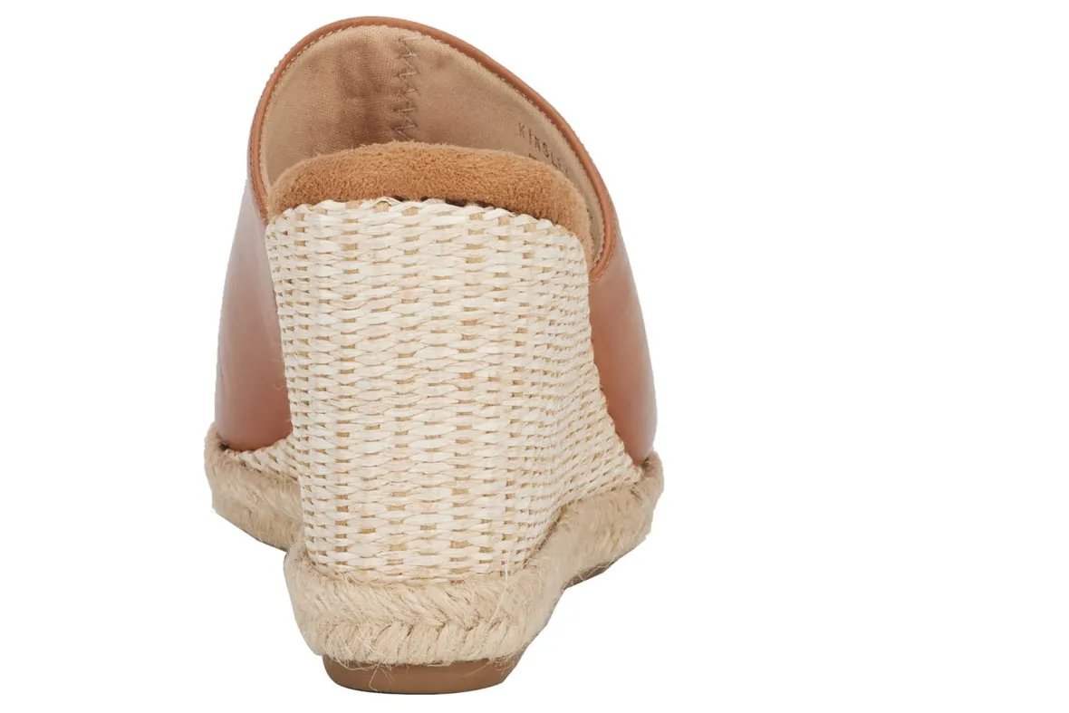 A high-heeled wedge sandal that feels like you are walking on clouds! Kinsley by Ros is made from soft leather uppers with a silky knit-fit lining that includes discreet instep goring for foot flexibility. The raffia covered 3 1/2” wedge heel is offset with a 1/2” platform and accentuated with braided roping along the edge. A super cushioned, pillowy footbed and moderate arch support provide comfort with every step! Dressed up or worn casually, you’ll find yourself wearing Kinsley all summer long!