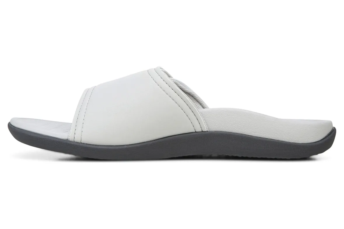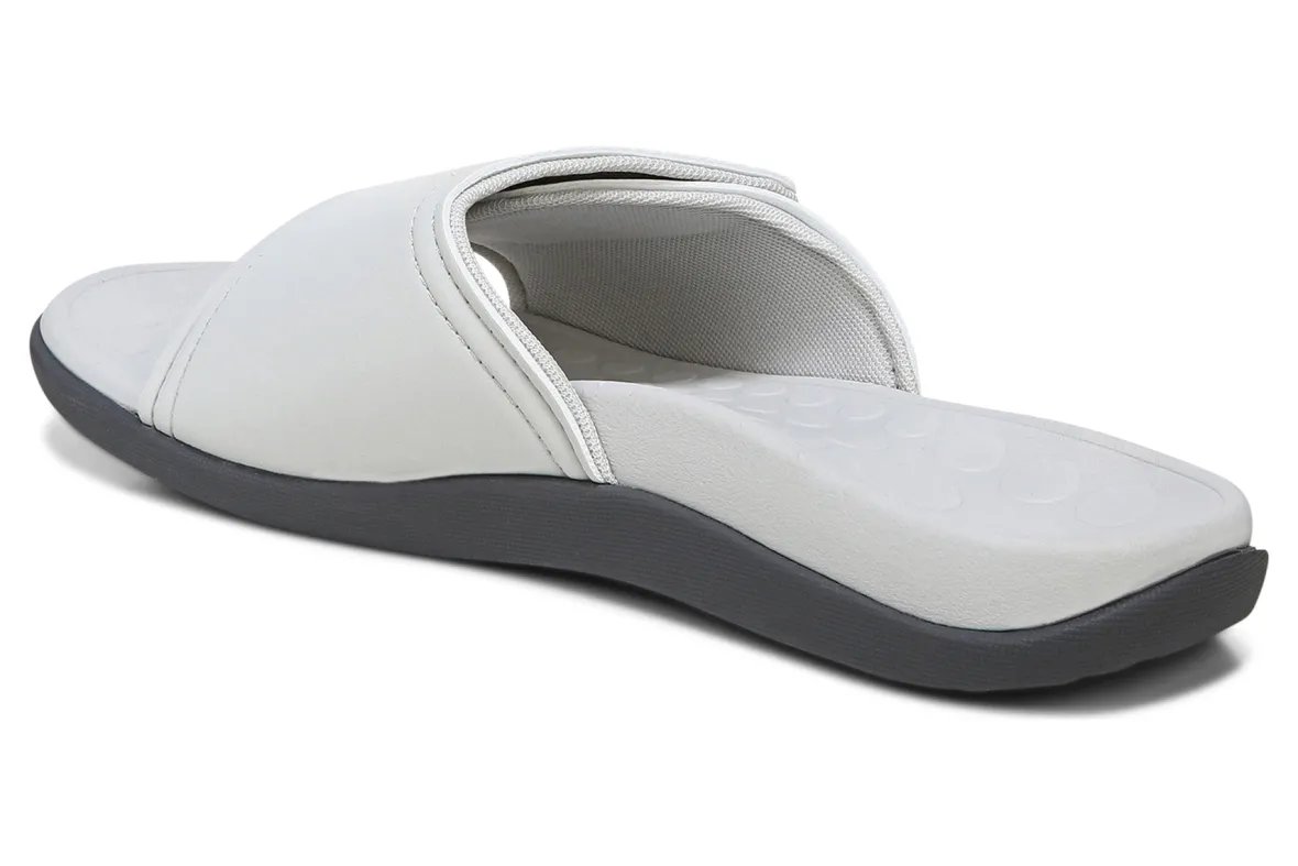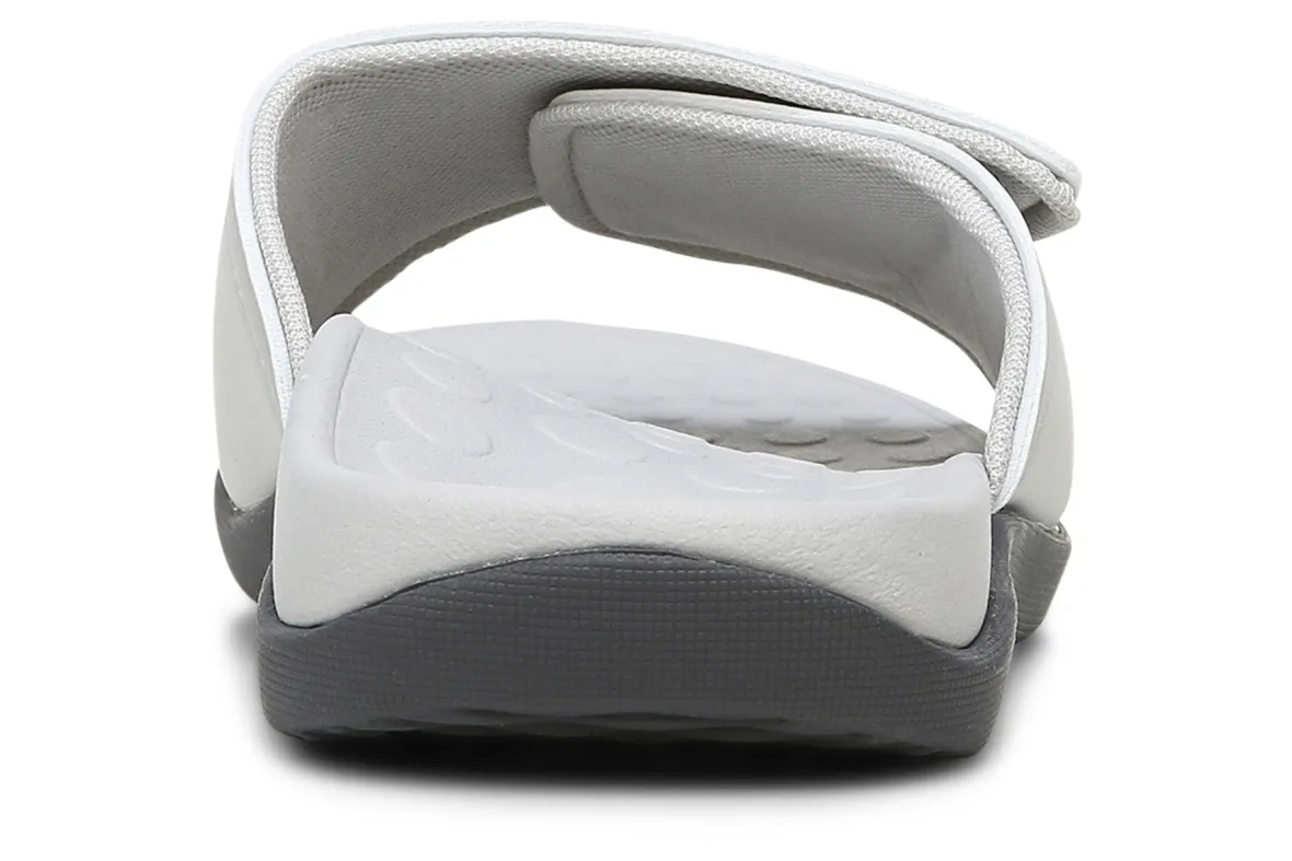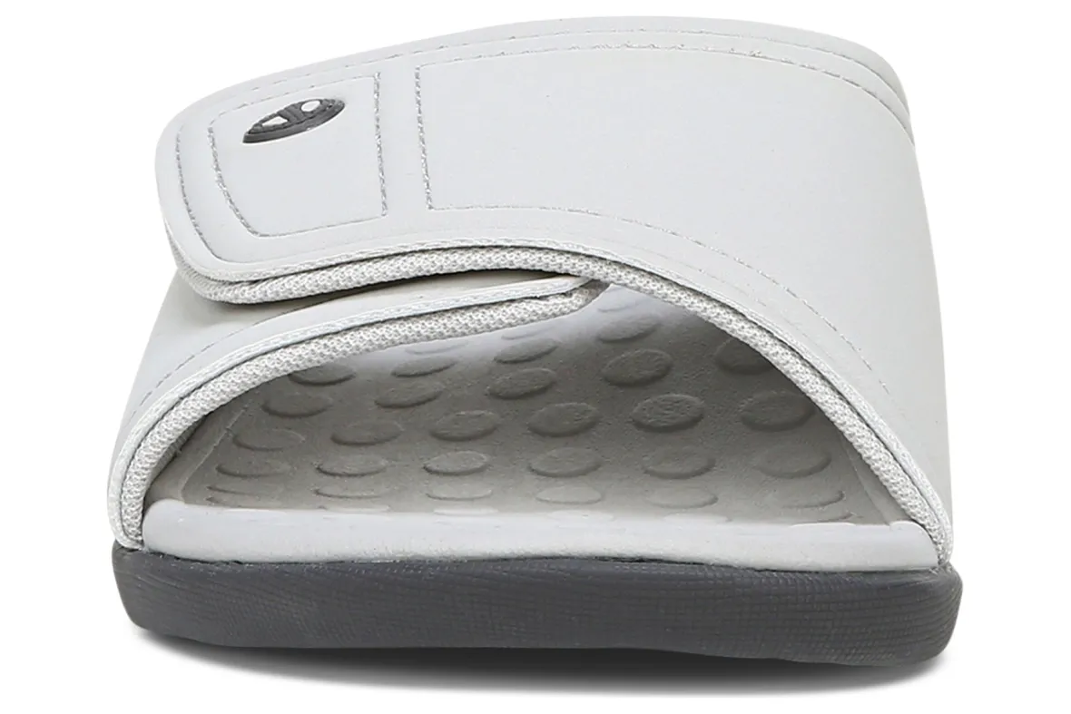 Vionic Kiwi is a sporty and comfortable unisex slide sandal. Prominent features include water-resistant padded uppers, a hook and loop closure, EVA midsoles and durable TPR outsoles. A quick-dry sports mesh wicks away moisture, while a biomechanical orthotic footbed stabilizes feet and supports natural alignment.Vionic Technology cushions arches, helps to alleviate heel pain and plantar fasciitis and has received an APMA Seal of Acceptance.