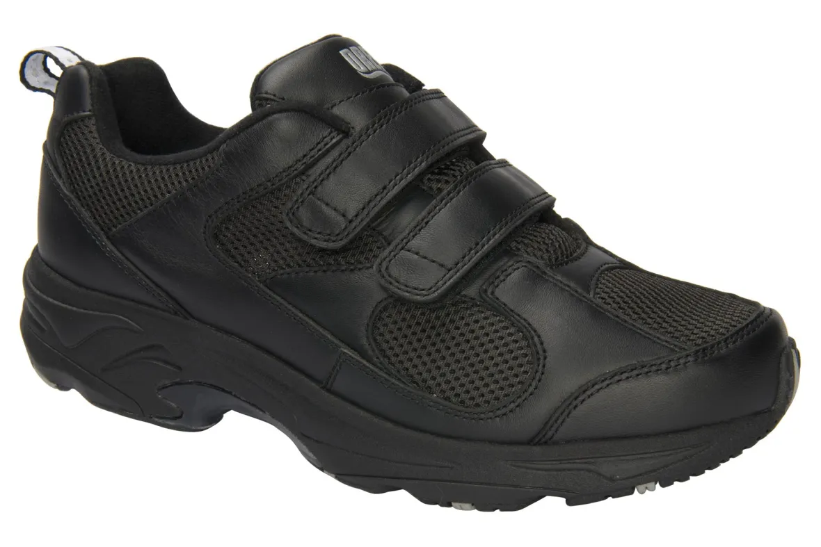 The men’s Drew Lightning II V walking shoe will keep you going in maximum comfort. Two removable insoles add extra depth for a more generous fit and accommodate a custom orthotic for a truly personalized fit. The durable rubber outsole and EVA midsole deliver unparalleled support and stability for all-day wear.Recommended support for plantar fasciitis.Narrow: N, Medium: M, Wide: W, X-Wide: 4W , XX-Wide: 6ELeather and breathable mesh upper with two hook and loop straps for a secure and customized fit.Soft fabric lining is breathable.Soft, foam-padded tongue and collar.Roomy toe box provides a more comfortable fit.Extended medial heel stabilizer prevents heel from slipping.Removable dual-density footbed molds to the shape of the foot, wicks away moisture and adds depth to accommodate a custom orthotic.Removable EVA filler doubles the depth for a more generous fit.Steel, wide shank adds stability and excellent arch support with a mild “Rocker Bottom” to help move the foot forward when walking.Durable rubber outsole provides traction and stability.Diabetic-friendly.44735-21 WHITE