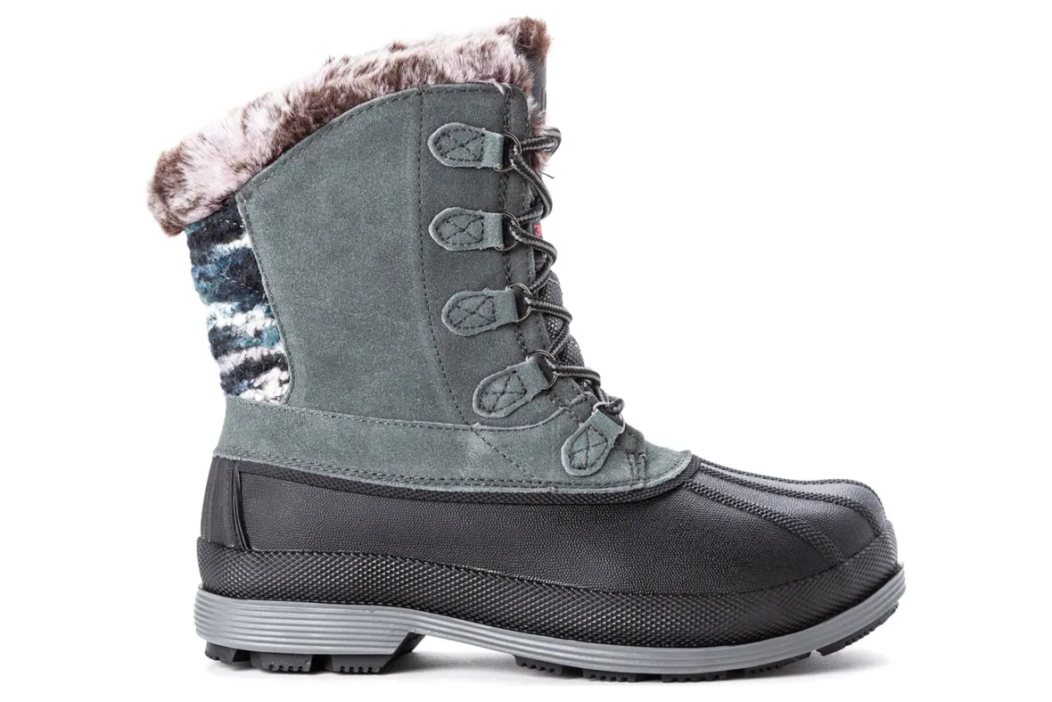 Propet Lumi Tall Lace is a warm, rugged and comfortable cold weather boot. These durable shoes have waterproof suede uppers, a soft faux fur lining and a sturdy rubber outsole with high traction.