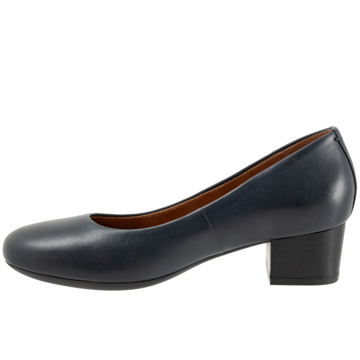 Softwalk Lynn is a casual pump with a comfortable-height stacked heel. The rubberized sole is flexible and the cushioned footbed is lined in leather, has arch support and is removable.