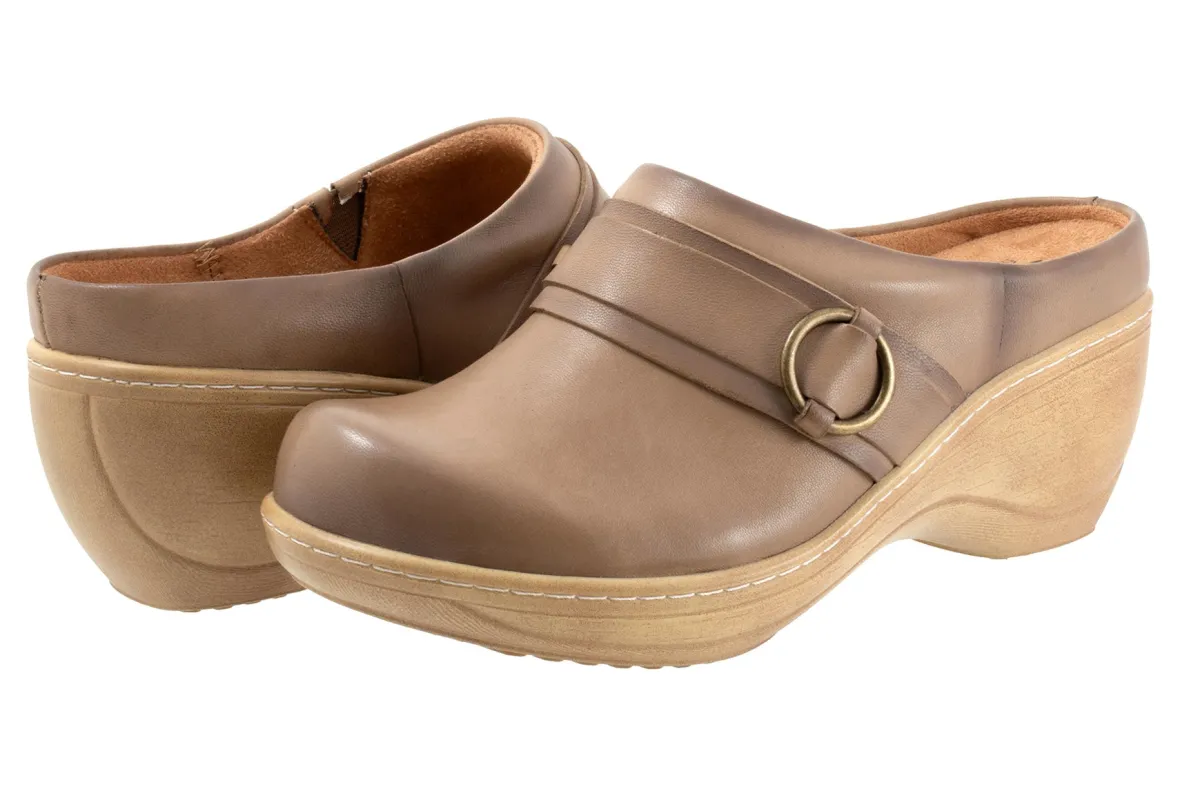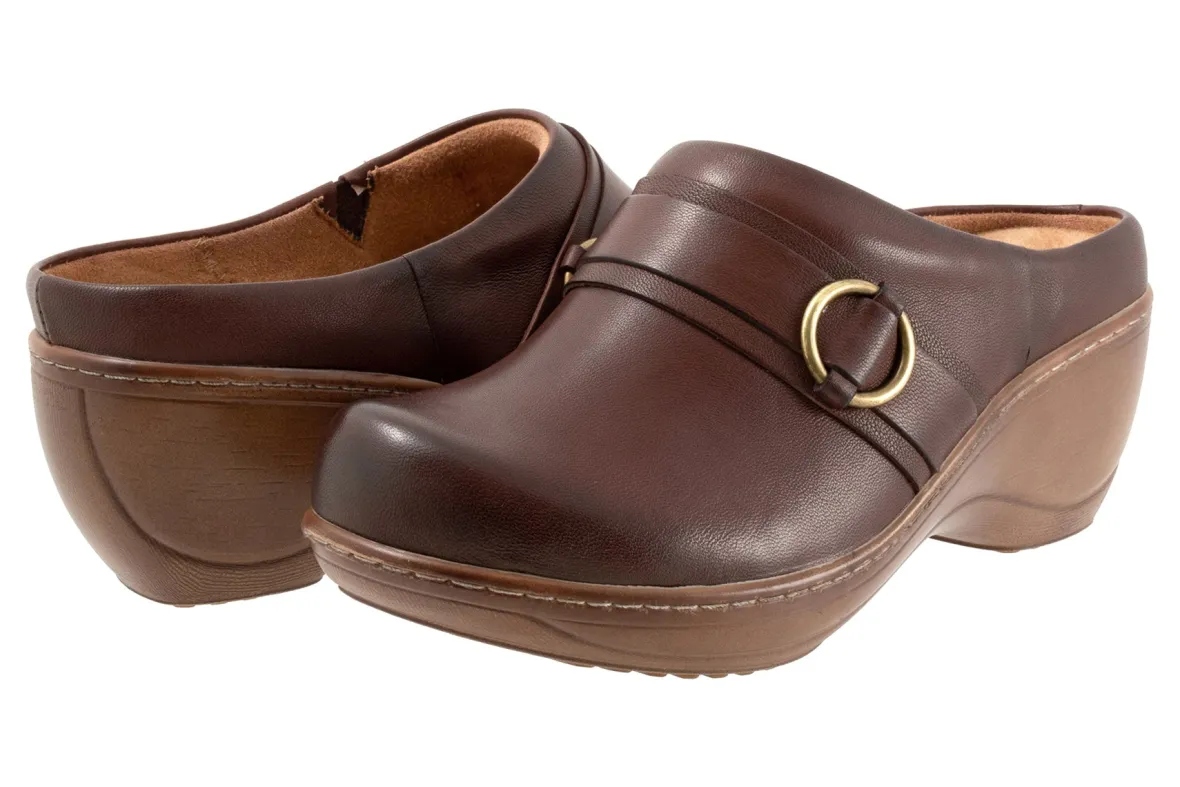 The Macintyre is another variation of Softwalk’s best-selling Madison clog with the addition of a strap and cute buckle design. The Macintyre clog has a soft removable footbed with arch support and is built on our popular curvy lightweight platform wedge.