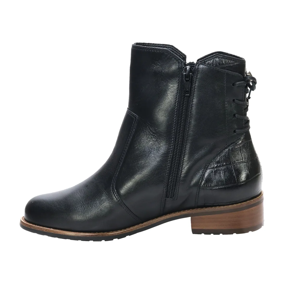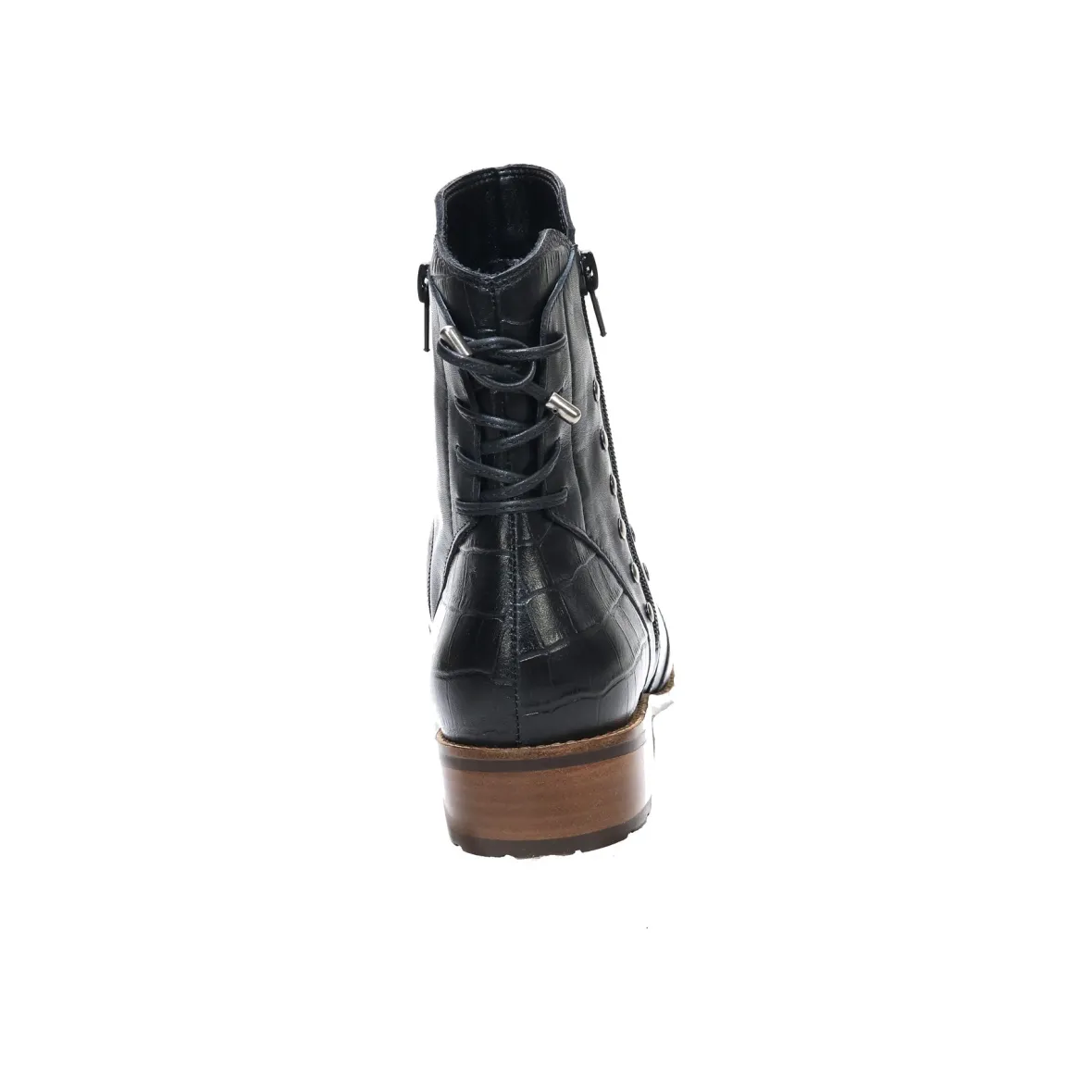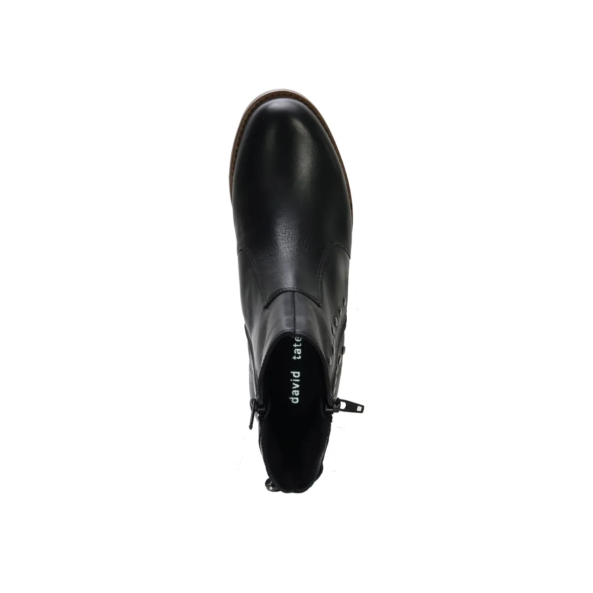 The meticulously crafted David Tate® Maestro boot features a waterproof soft calf leather upper that ensures dry and comfortable feet in any weather. It comes with a removable contoured rubber insole that guarantees exceptional comfort throughout the day. The boot is adorned with stylish metal nail head studs, leather laces at the back, and leather croc trim, enhancing its fashionable appearance while providing sturdy support for every step.