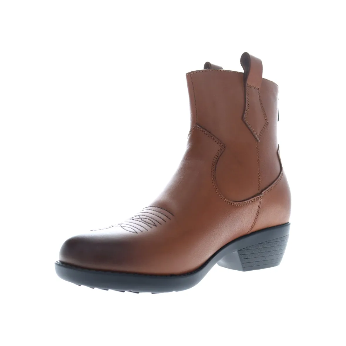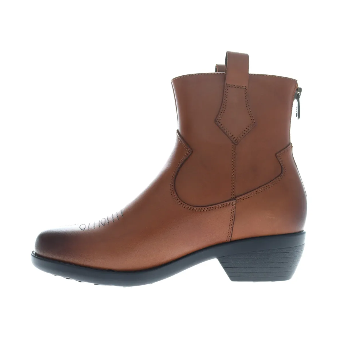 Soft leather with western toe detailed stitching and dual pull tabs for easy on and off.