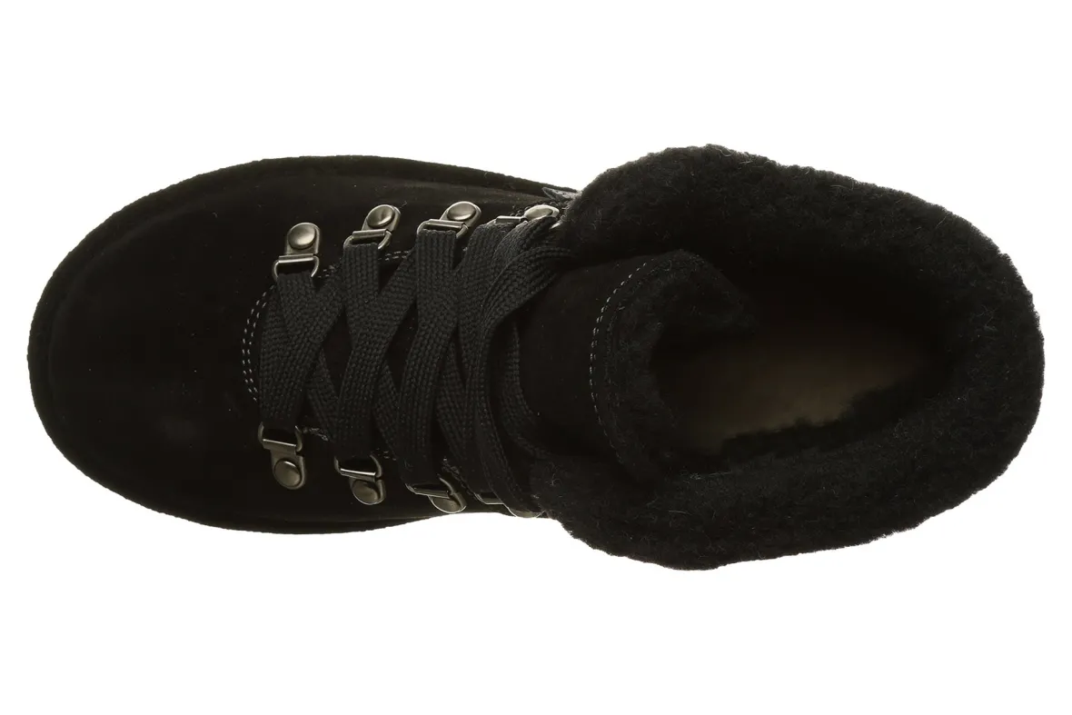 Bearpaw Marta is a cozy winter boot. Take on the cold weather with suede uppers, wool blend collar and lining, sheepskin footbed and lightweight rubber outsole. A lace-up closure, NeverWet® technology treatment and 5-inch shaft height outlines these durable winter boots.
