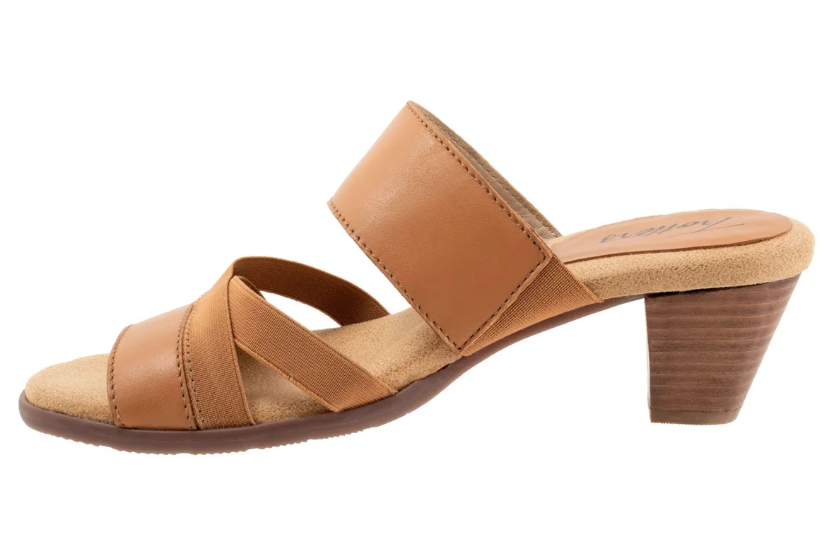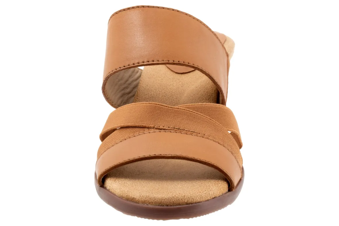 The Maxine has crossing stretch straps as well as an elastic v-gore for a comfortable fit. Maxine’s easygoing style and stacked heel keeps thing playful and chic.