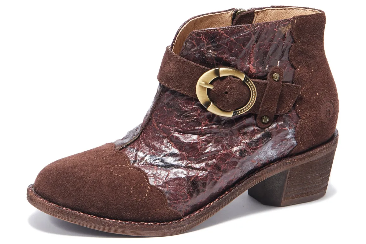 Halsa Footwear Miranda is a women’s bootie designed for comfort. These boots have leather uppers, textile linings, removable insoles and rubber outsoles. Prominent features include a side zippered closure, flexible midsole and 2-inch block heel.